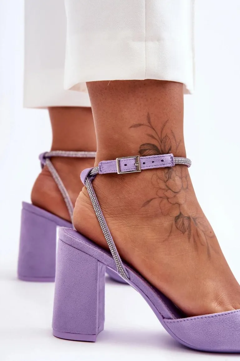 Zamszowe Czółenka Z Ozdobnym Paseczkiem Fioletowe Lirosa