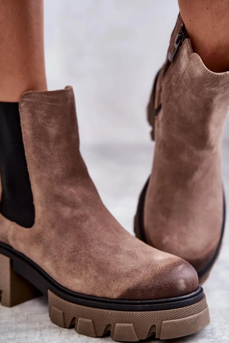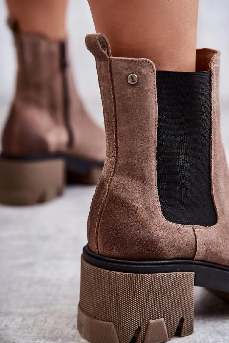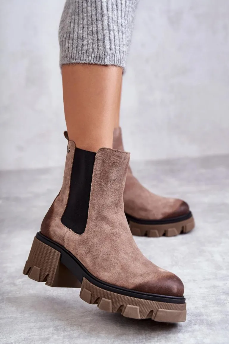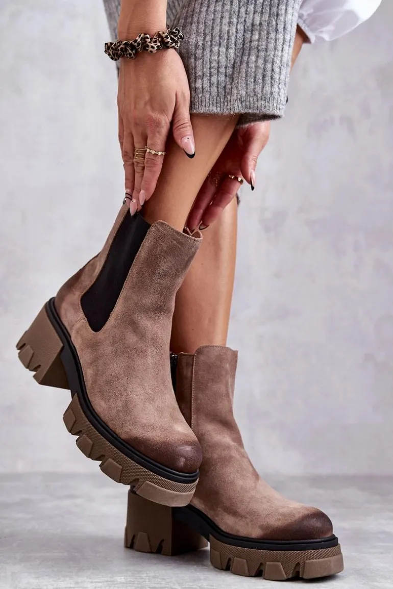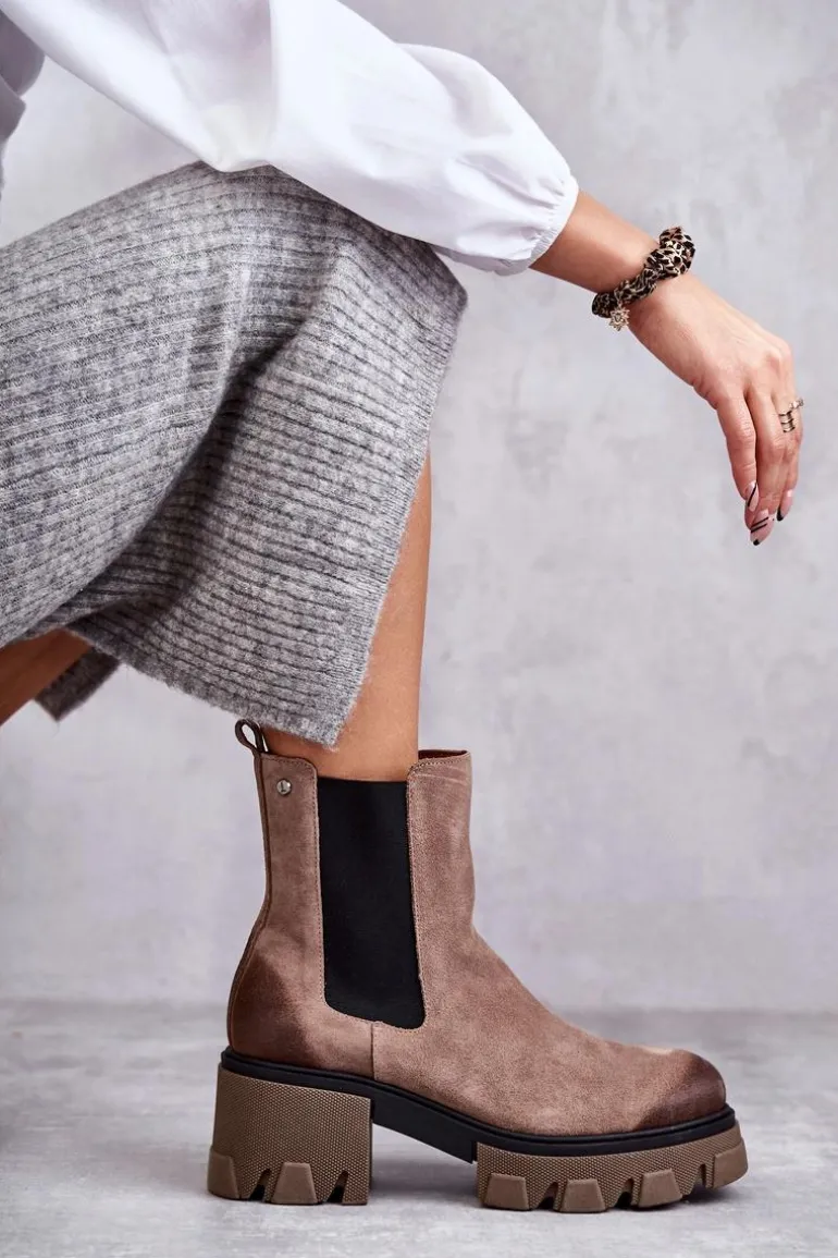 Zamszowe Damskie Botki Na Platformie Beżowe Lemar Hilde
