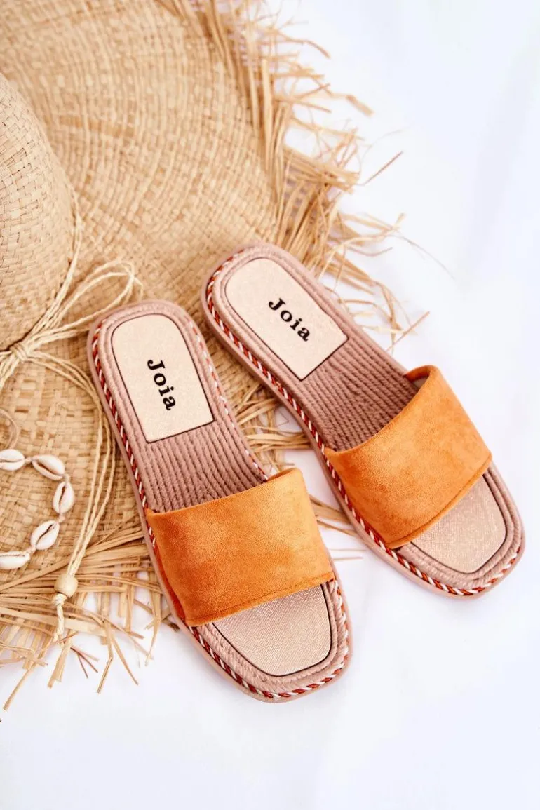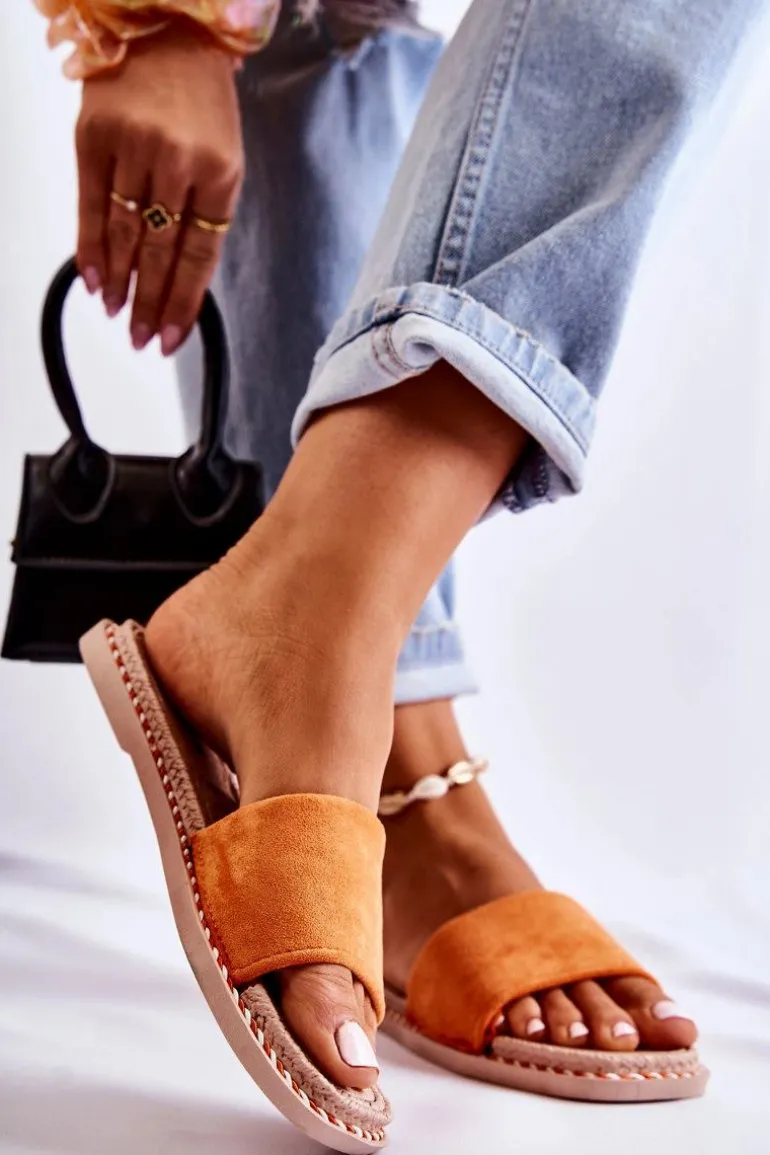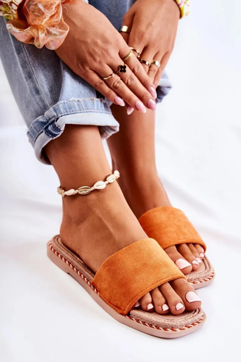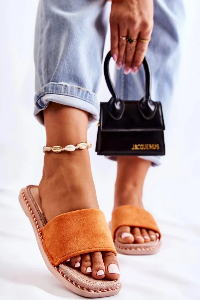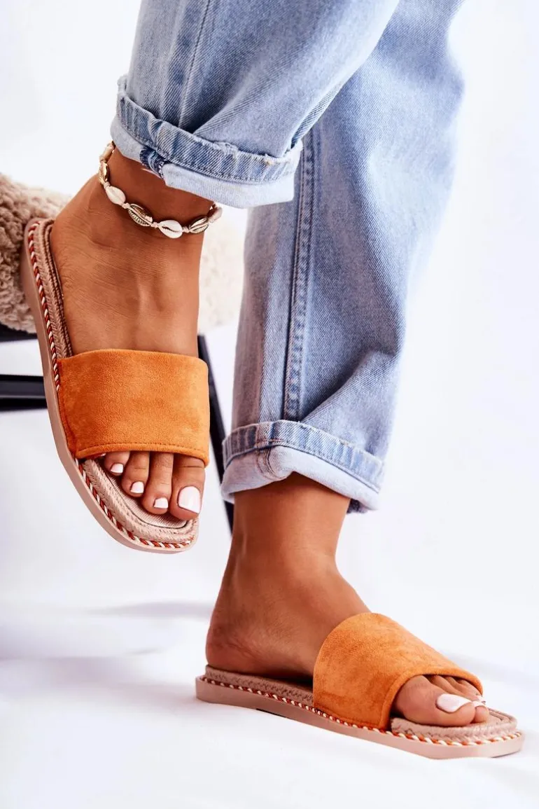 Zamszowe Damskie Klapki Pomarańczowe Sunset