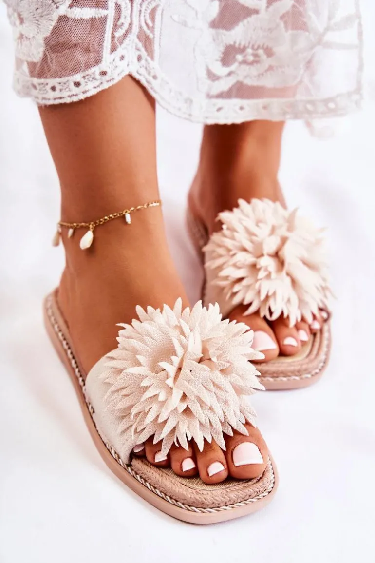 Zamszowe Damskie Klapki Z Ozdobą Beżowe Giorgia