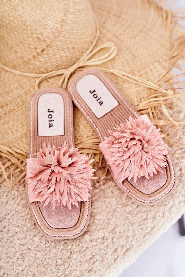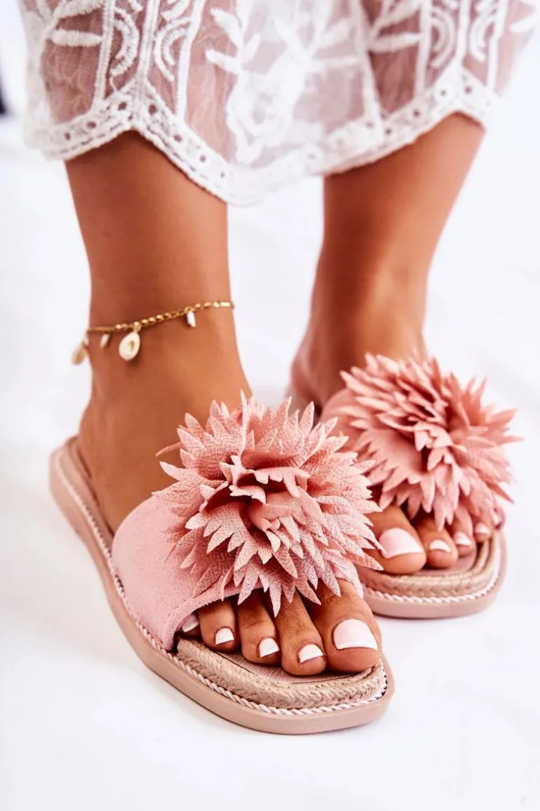 Zamszowe Damskie Klapki Z Ozdobą Różowe Giorgia