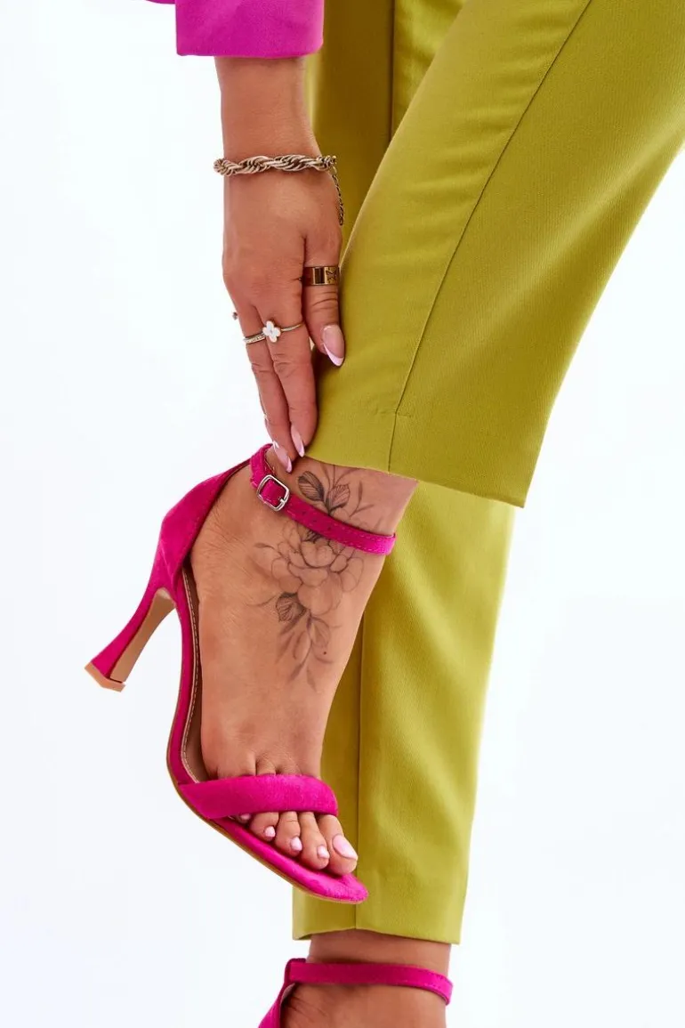 Zamszowe Damskie Sandały Na Obcasie Fuksja Rousses
