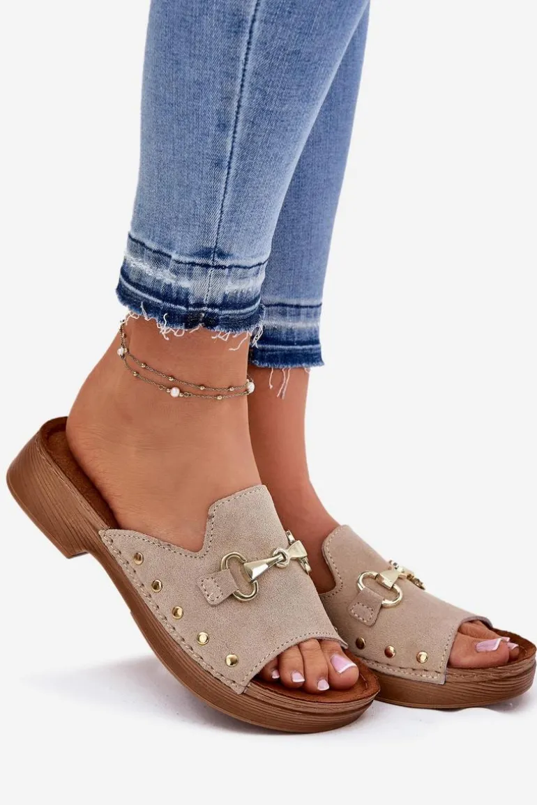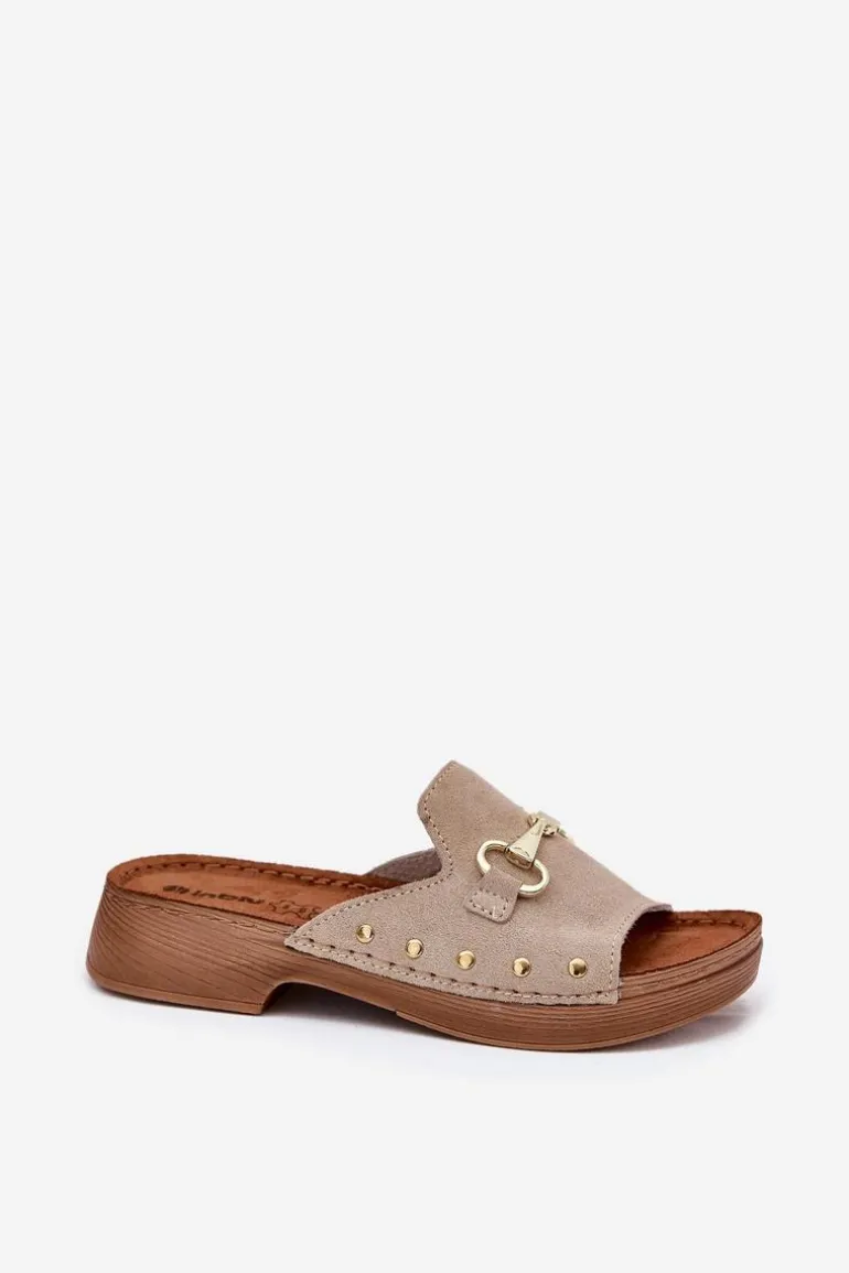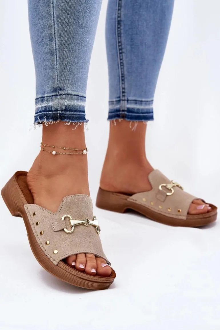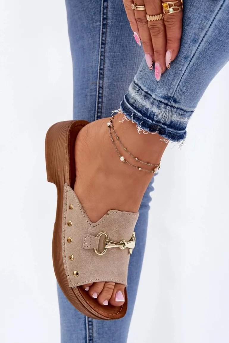 Klapki damskie od marki INBLU, wykonane z naturalnego zamszu, to elegancka i wygodna opcja na co dzień. Osadzone na płaskim obcasie, zapewniają komfort przez cały dzień. Skórzana, profilowana wkładka dostosowuje się do anatomicznego kształtu stopy, zapewniając doskonałe dopasowanie i wygodę. Elastyczna podeszwa gwarantuje stabilność i sprężystość podczas chodzenia. Idealne do codziennych stylizacji, łączące modny wygląd z funkcjonalnością. Przy wyborze rozmiaru prosimy sugerować się tabelą rozmiarów.