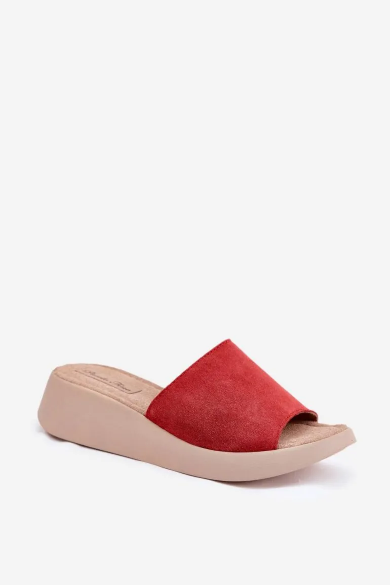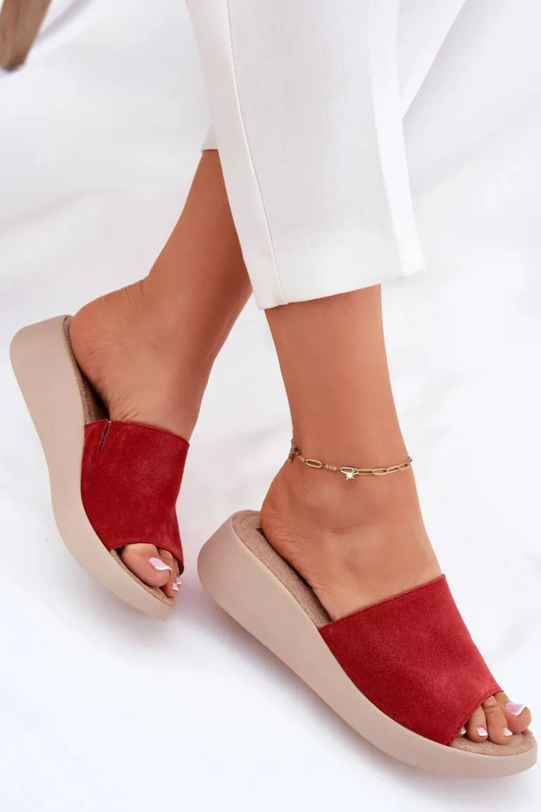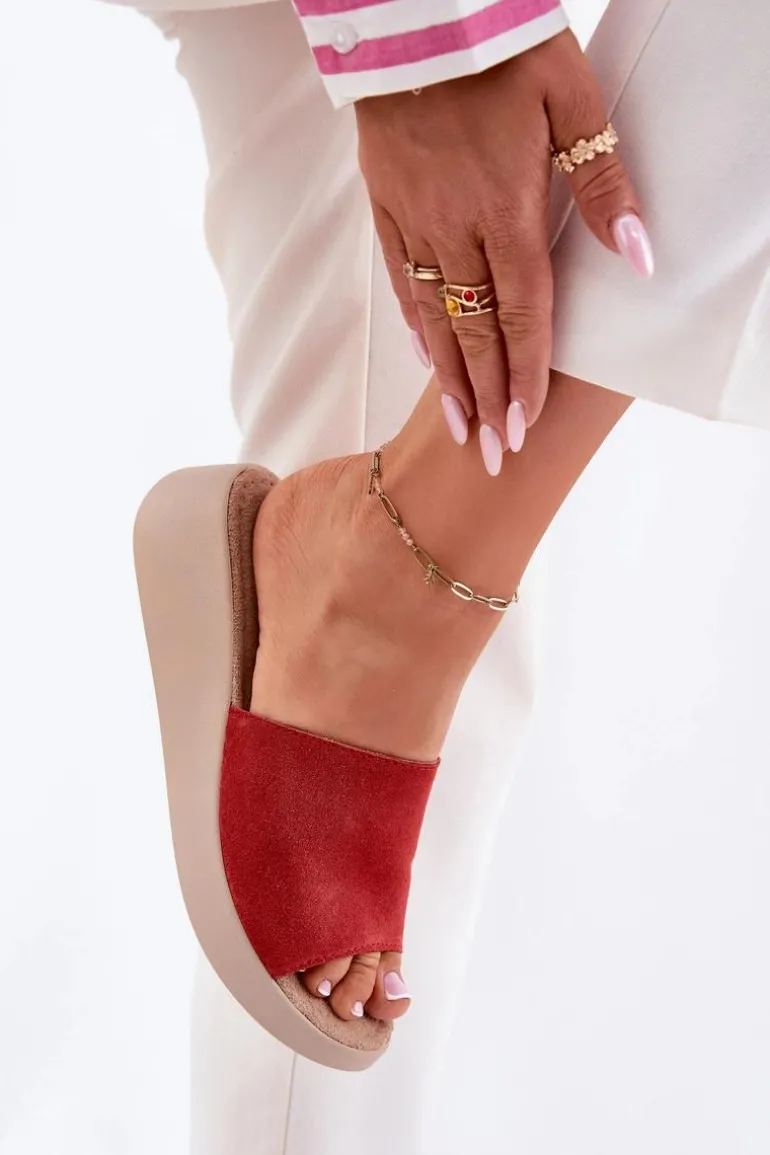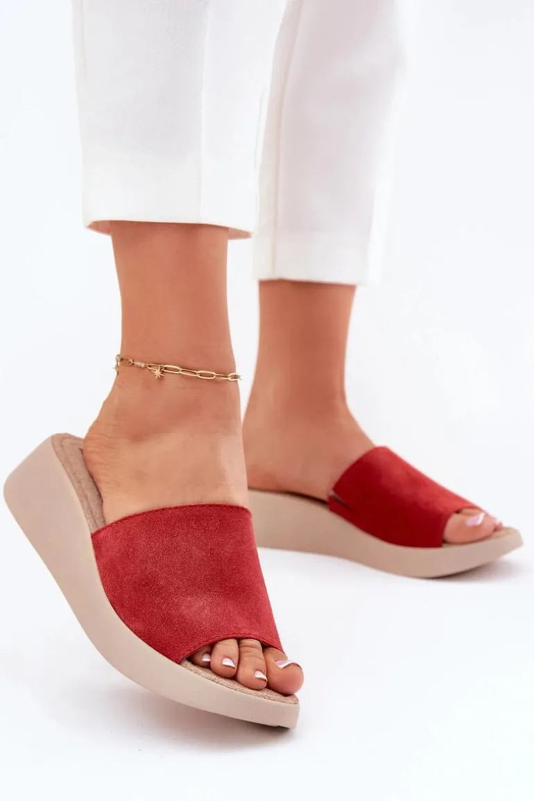 Damskie klapki wykonane z naturalnego zamszu to elegancka opcja na ciepłe dni. Osadzone na koturnie, zapewniają wygodę oraz stabilność przez cały dzień. Miękka wkładka dba o komfort stóp, czyniąc je idealnym wyborem do codziennych, letnich stylizacji. Te klapki łączą styl z funkcjonalnością, doskonale uzupełniając casualowe i bardziej eleganckie looki. Przy wyborze rozmiaru prosimy sugerować się tabelą rozmiarów.