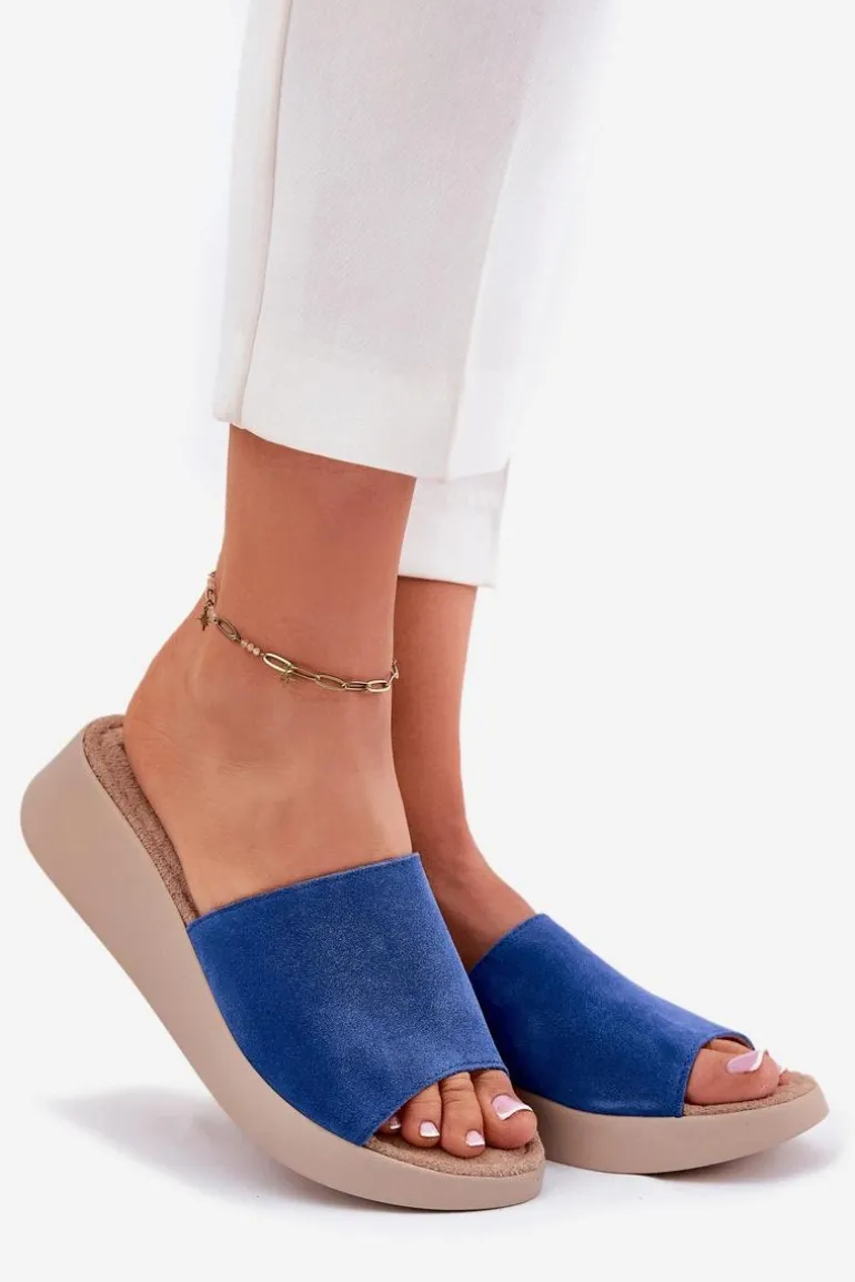 Damskie klapki wykonane z naturalnego zamszu to elegancka opcja na ciepłe dni. Osadzone na koturnie, zapewniają wygodę oraz stabilność przez cały dzień. Miękka wkładka dba o komfort stóp, czyniąc je idealnym wyborem do codziennych, letnich stylizacji. Te klapki łączą styl z funkcjonalnością, doskonale uzupełniając casualowe i bardziej eleganckie looki. Przy wyborze rozmiaru prosimy sugerować się tabelą rozmiarów.