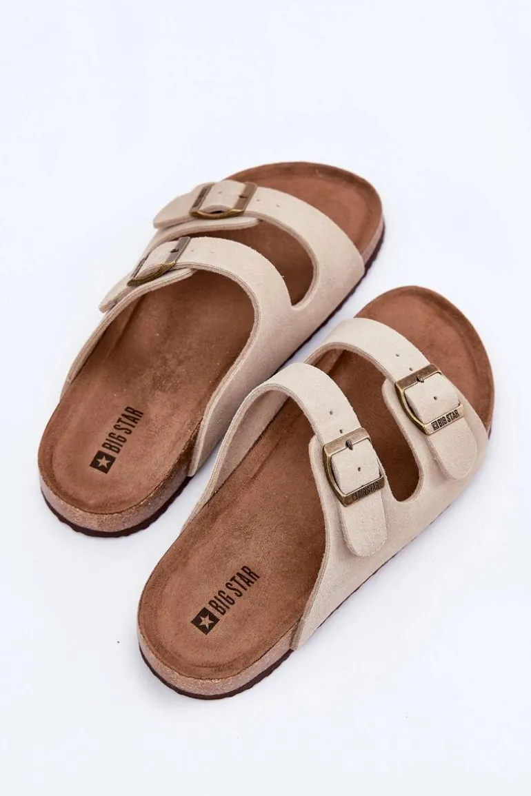 Zamszowe Klapki Damskie Z Klamrami Big Star RR274A391 Beżowe