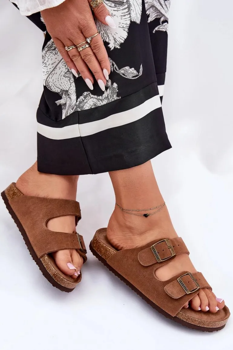 Klapki damskie z naturalnego zamszu od marki Big Star. Osadzone na platformie, to połączenie komfortu i stylu. Regulowane paski z klamrami pozwalają na idealne dopasowanie do stopy, zapewniając wygodę przez cały dzień. Profilowana wkładka dodatkowo zwiększa komfort. Te klapki będą doskonałym wyborem na co dzień, idealnie komponując się z letnimi stylizacjami. Przy wyborze rozmiaru prosimy sugerować się tabelą rozmiarów.
