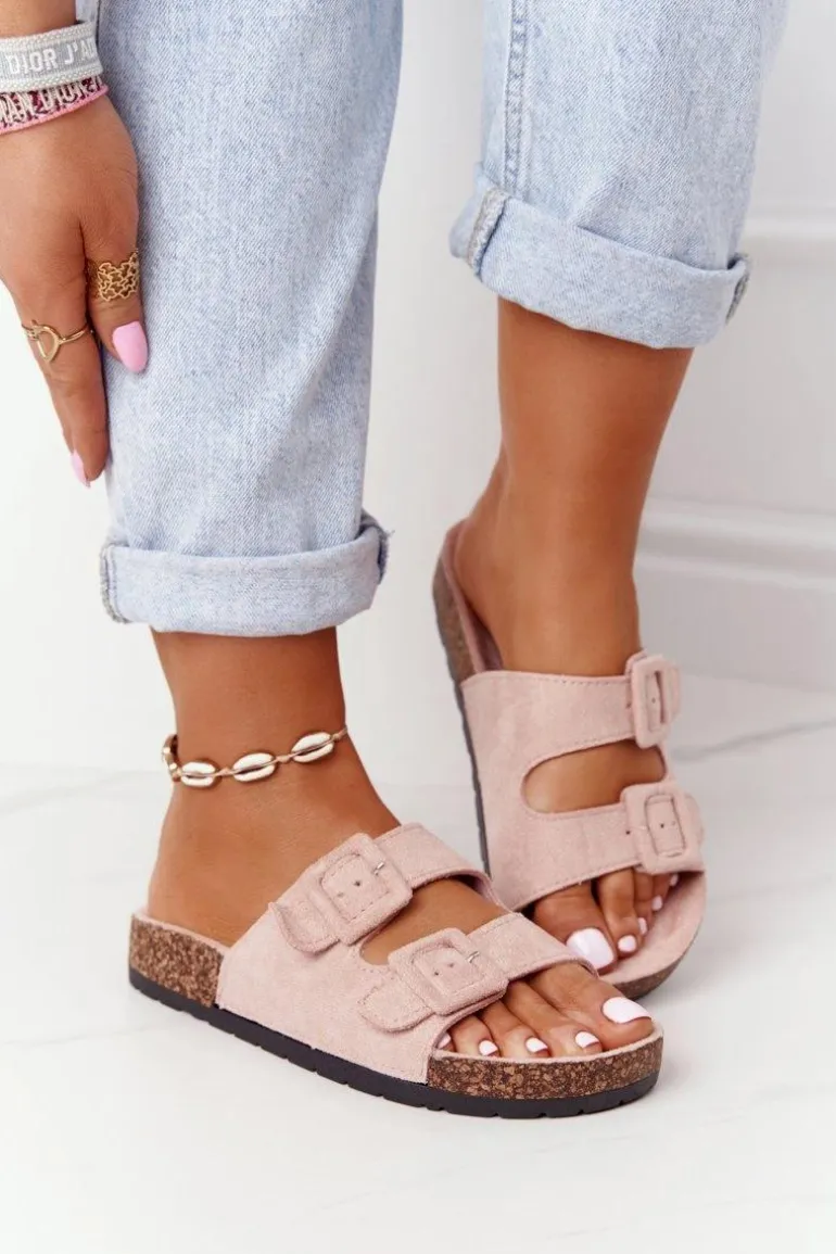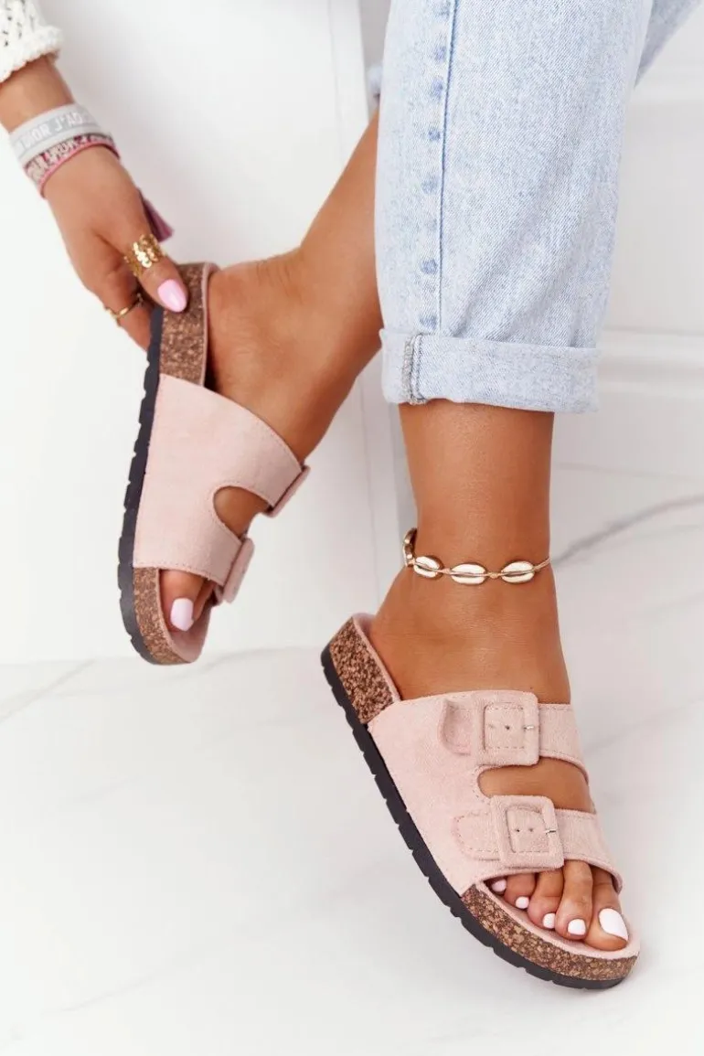 Zamszowe Klapki Na Korkowej Podeszwie Jasnoróżowe Jennifer