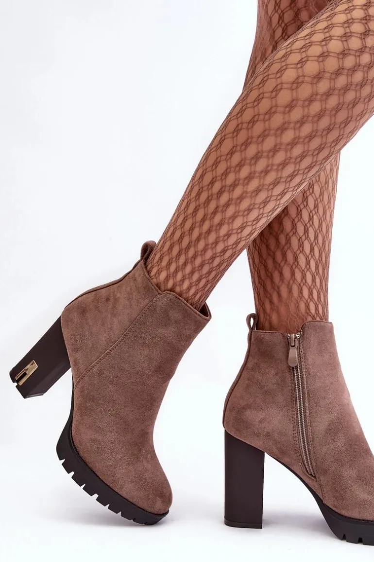 Klasyczne botki damskie zostały wykonane z miłego w dotyku eko zamszu. Osadzone na obcasie w postaci słupka. Buty te posiadają migdałowy nosek oraz usztywniany zapiętek. Model z suwakiem z boku cholewki. W środku nie posiadają ocieplenia, natomiast wkładka została wykonana z eko skóry. Przy wyborze rozmiaru prosimy sugerować się tabelą rozmiarów.