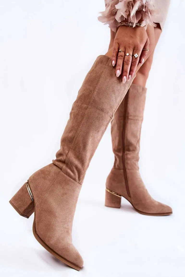 Zamszowe Klasyczne Kozaki Na Suwak Beżowe Leyette
