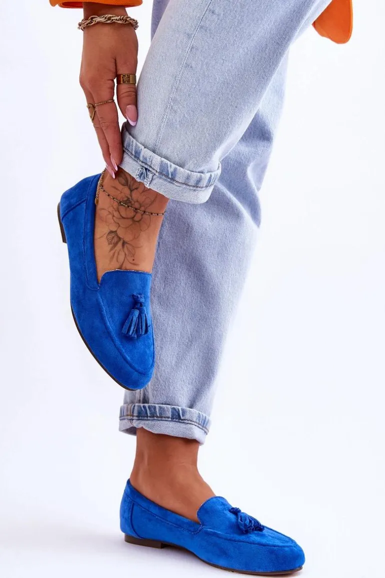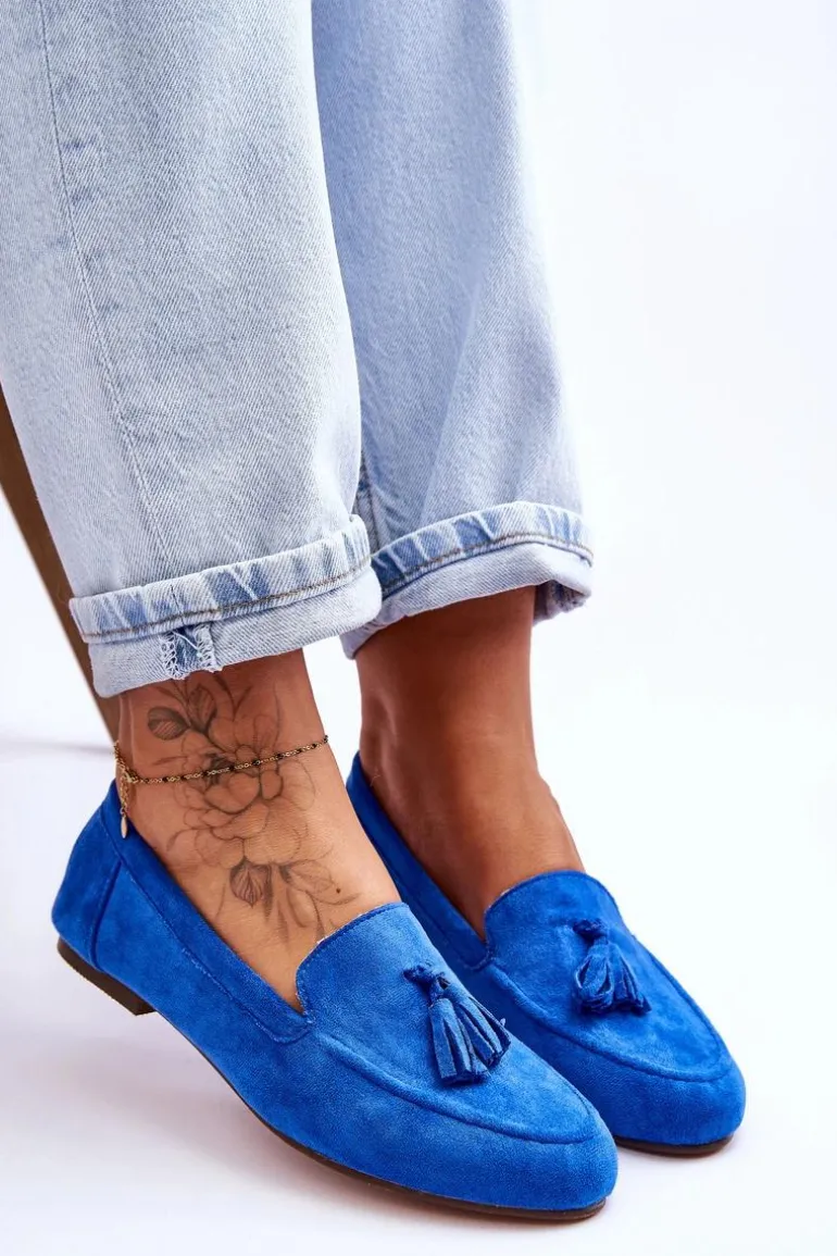 Zamszowe Klasyczne Mokasyny Z Frędzlami Niebieskie Averil