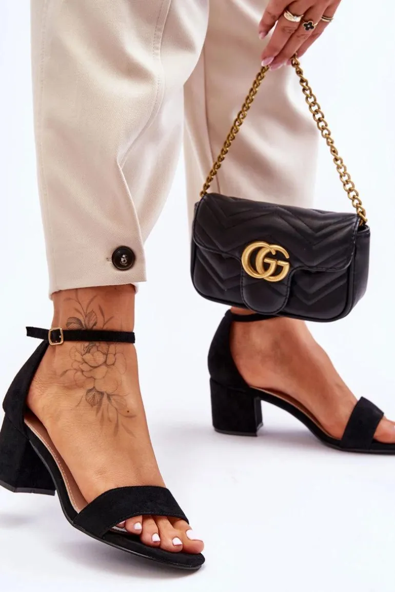 Klasyczne sandałki na niewysokim obcasie w postaci stabilnego słupka zostały wykonane z przyjemnego w dotyku eko zamszu. Sandałki te posiadają usztywniany zapiętek. Wkładka została wykonana z eko skóry i zapewni komfort podczas użytkowania obuwia. Nosek odkryty, zaokrąglony. Zapinane wokół kostki na regulowany pasek ze sprzączką. Na pewno wykorzystasz je w wielu sytuacjach! Przy wyborze rozmiaru prosimy sugerować się tabelą rozmiarów.
