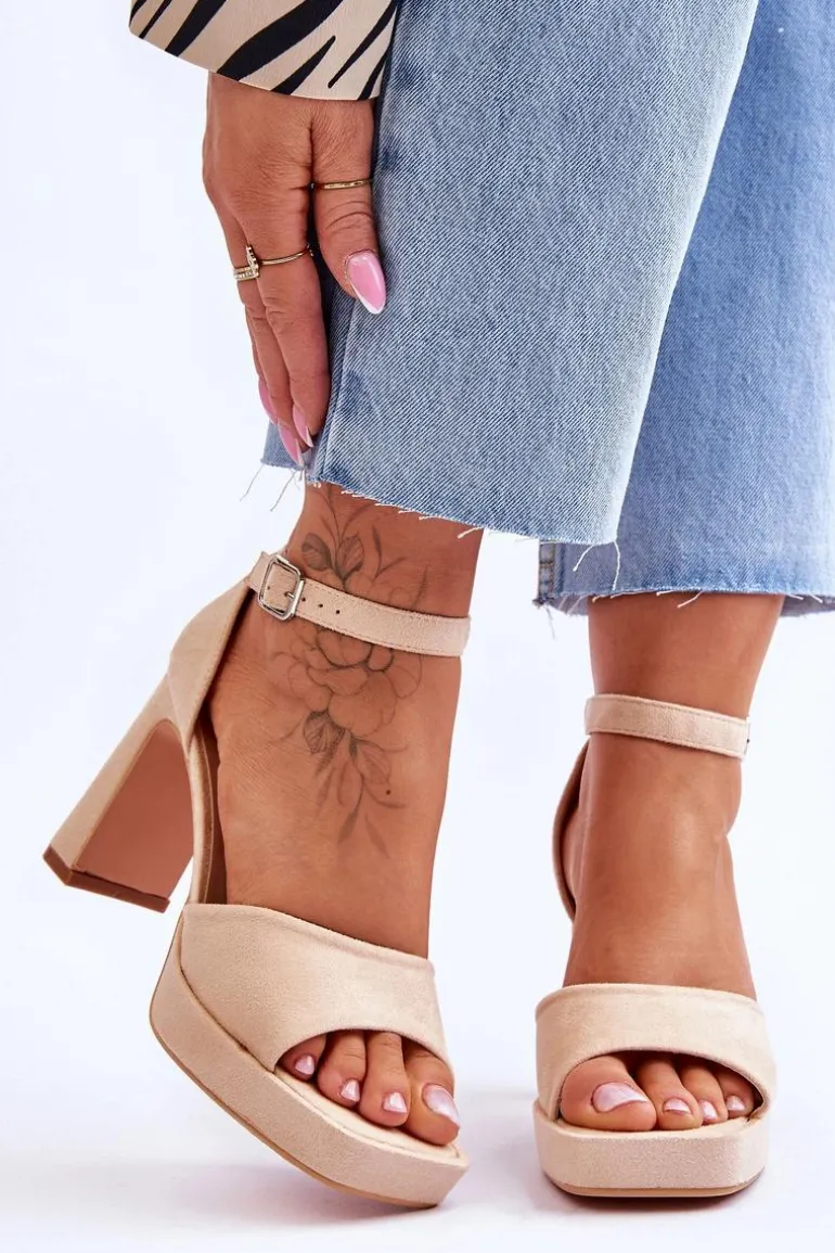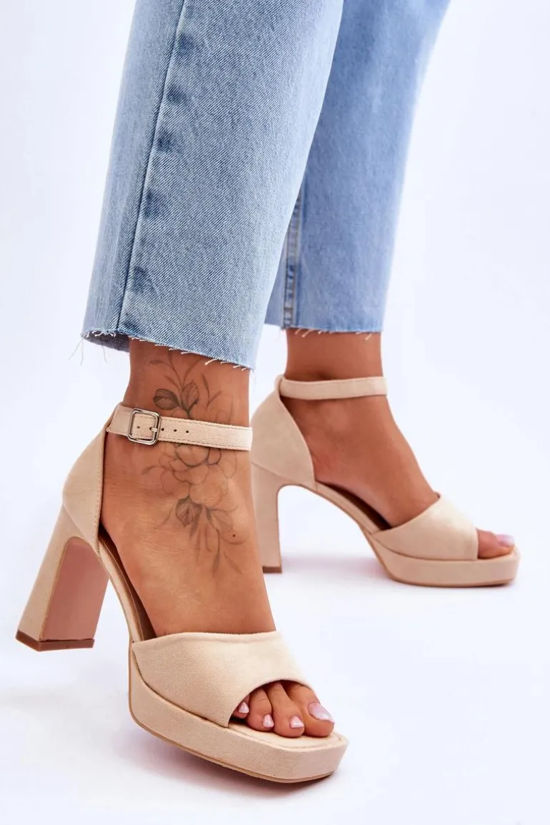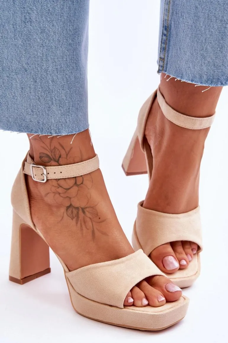 Zamszowe Klasyczne Sandały Na Platformie Beżowe Classy