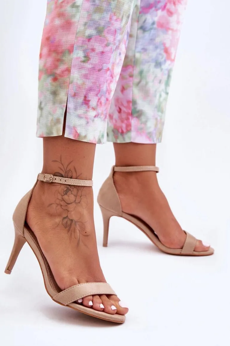Klasyczne sandały zostały wykonane z eko zamszu. Posiadają usztywniany zapiętek. Model z odkrytym, zaokrąglonym noskiem. Sandały zapinane są wokół kostki na regulowany pasek ze sprzączką. Miękka wkładka wykonana z eko skóry pozwoli na komfortowe użytkowanie. Przy wyborze rozmiaru prosimy sugerować się tabelą rozmiarów.