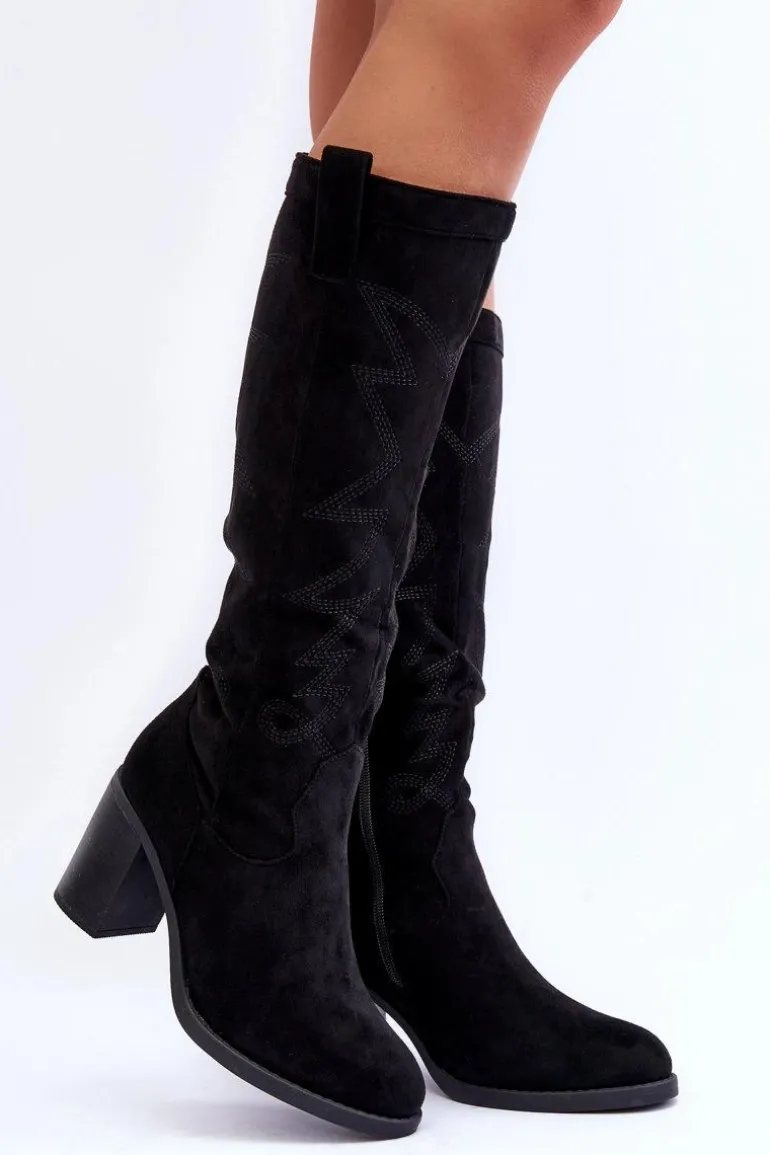 Kozaki damskie zostały wykonane z eko zamszu. Osadzone na obcasie w postaci słupka. Zapinane na suwak z boku. Dodatkowo zapiętek w tym obuwiu został usztywniony. Miękka wkładka zapewni komfortowe użytkowanie. Model ten świetnie sprawdzi się w wielu stylizacjach! Przy wyborze rozmiaru prosimy sugerować się tabelą rozmiarów.