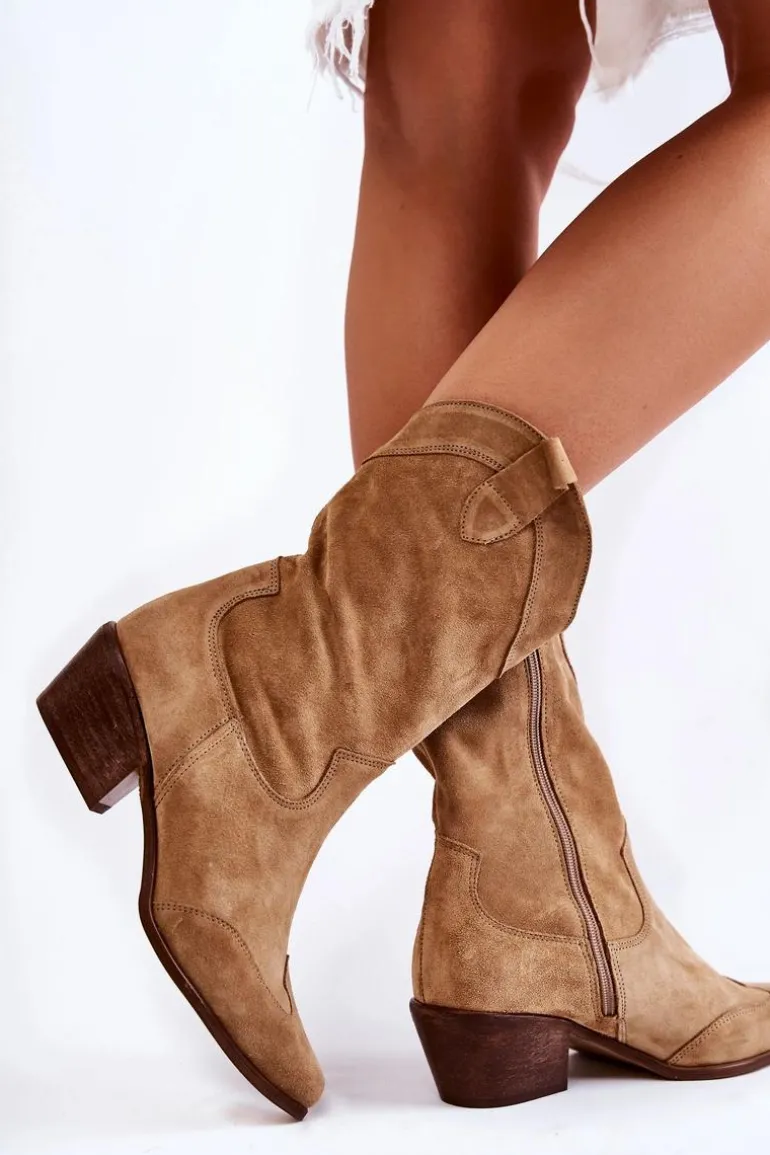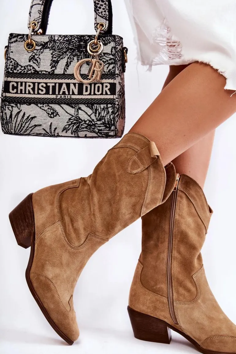Kozaki – kowbojki zostały wykonane z przyjemnej w dotyku skóry naturalnej. Posiadają delikatne przeszycia na przodzie. Kozaki o fasonie kowbojek posiadają nosek w szpic oraz masywny obcas w postaci słupka. Model wsuwany z suwakiem z boku cholewki. Miękka, delikatnie ocieplona wkładka. Kozaki posiadają usztywniany zapiętek. Ten wyjątkowy model powinien być właśnie Twój! Przy wyborze rozmiaru prosimy sugerować się tabelą rozmiarów.
