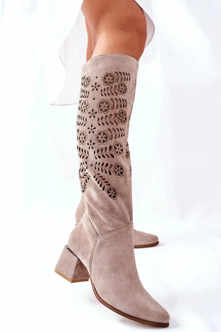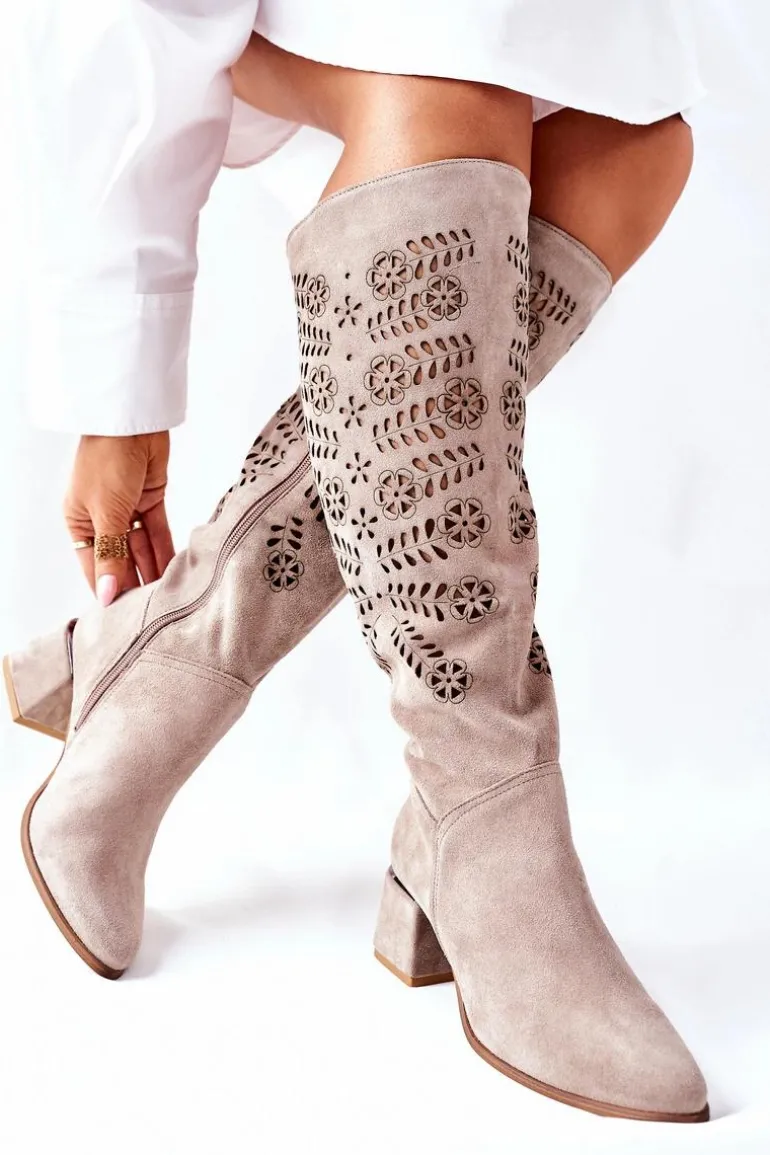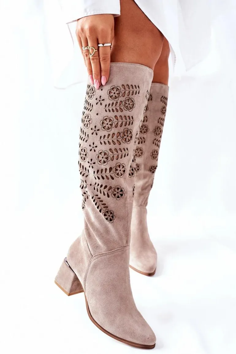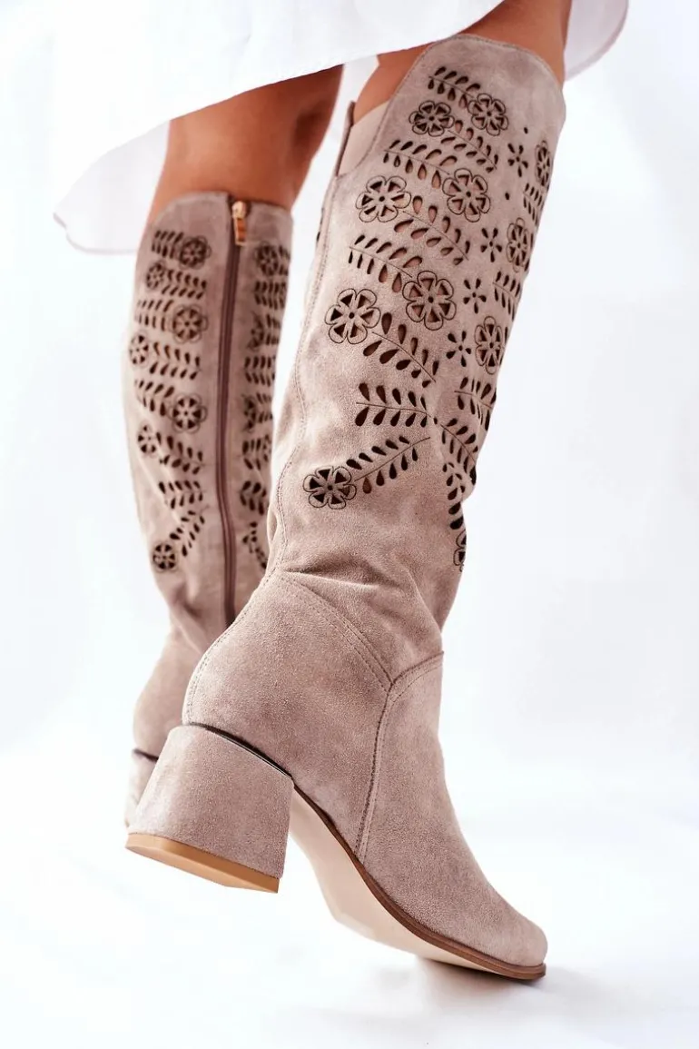Piękne kozaki damskie od polskiego producenta, firmy Lewski. Każdy model wykonany jest z naturalnych skór wysokiej jakości. Ażurowe kozaki wykonane są z miękkiego, naturalnego zamszu. Wszyty zamek w cholewce ułatwi zakładanie, a dodatkowa guma dopasuje kozaki do łydki. Przy wyborze rozmiaru prosimy sugerować się tabelą rozmiarów.