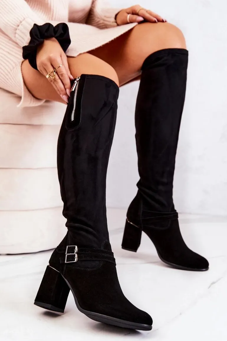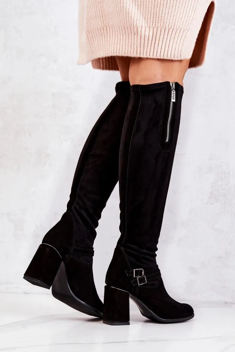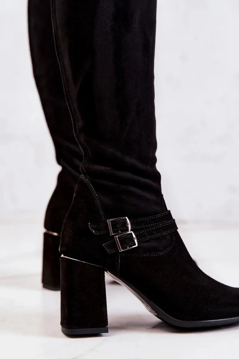 Piękne kozaki wykonane z naturalnej skóry zamszowej. Suwak u góry cholewki pozwala na zmniejszenie jej szerokości. Obcas typu słupek. W środku ocieplane kocem obuwniczym. Posiadają ozdobne paseczki zapinane na sprzączki. Klasyczny wzór idealny do wielu stylizacji. Nie zwlekaj, kup dziś i zachwyć każdego swoim nowym obuwiem! Przy wyborze rozmiaru prosimy sugerować się tabelą rozmiarów.