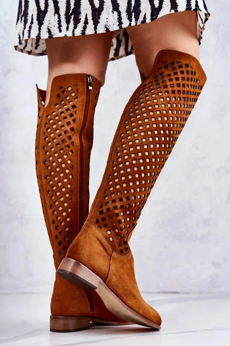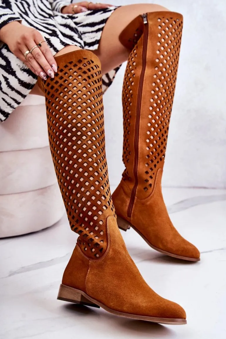 Zamszowe Kozaki Z Ażurowym Wzorem Rude Arinna