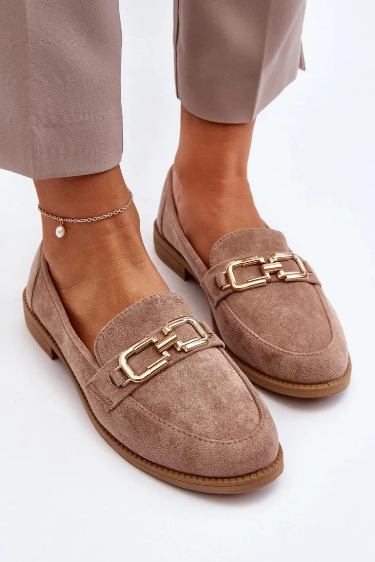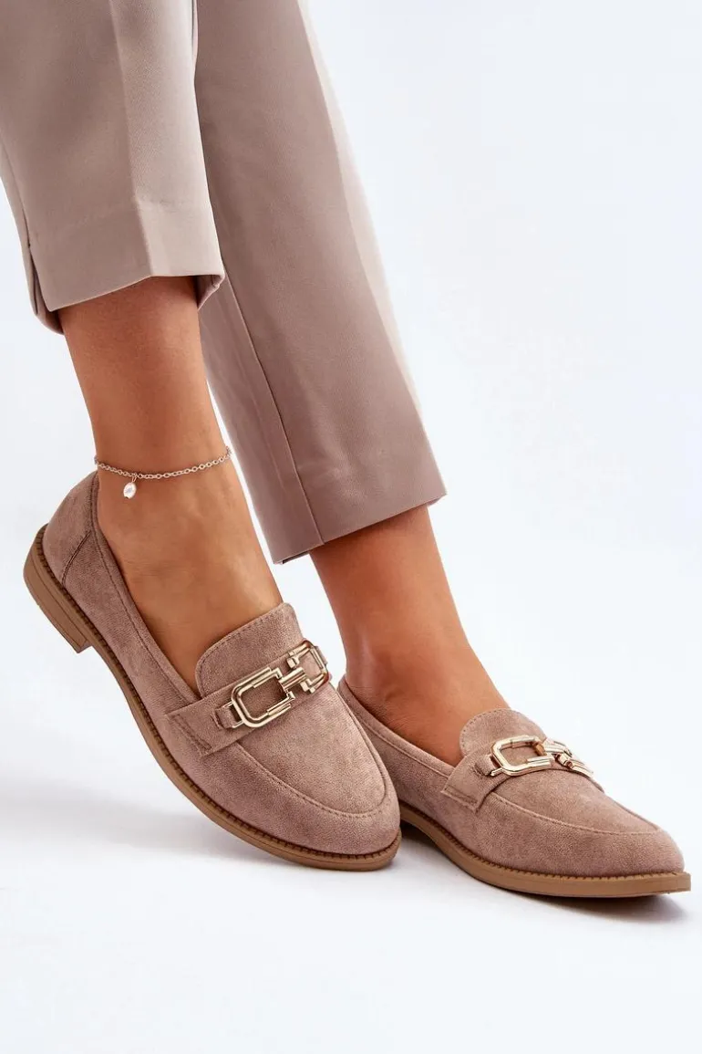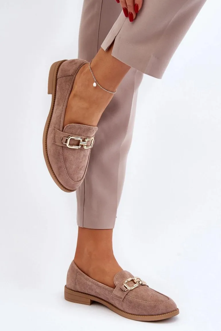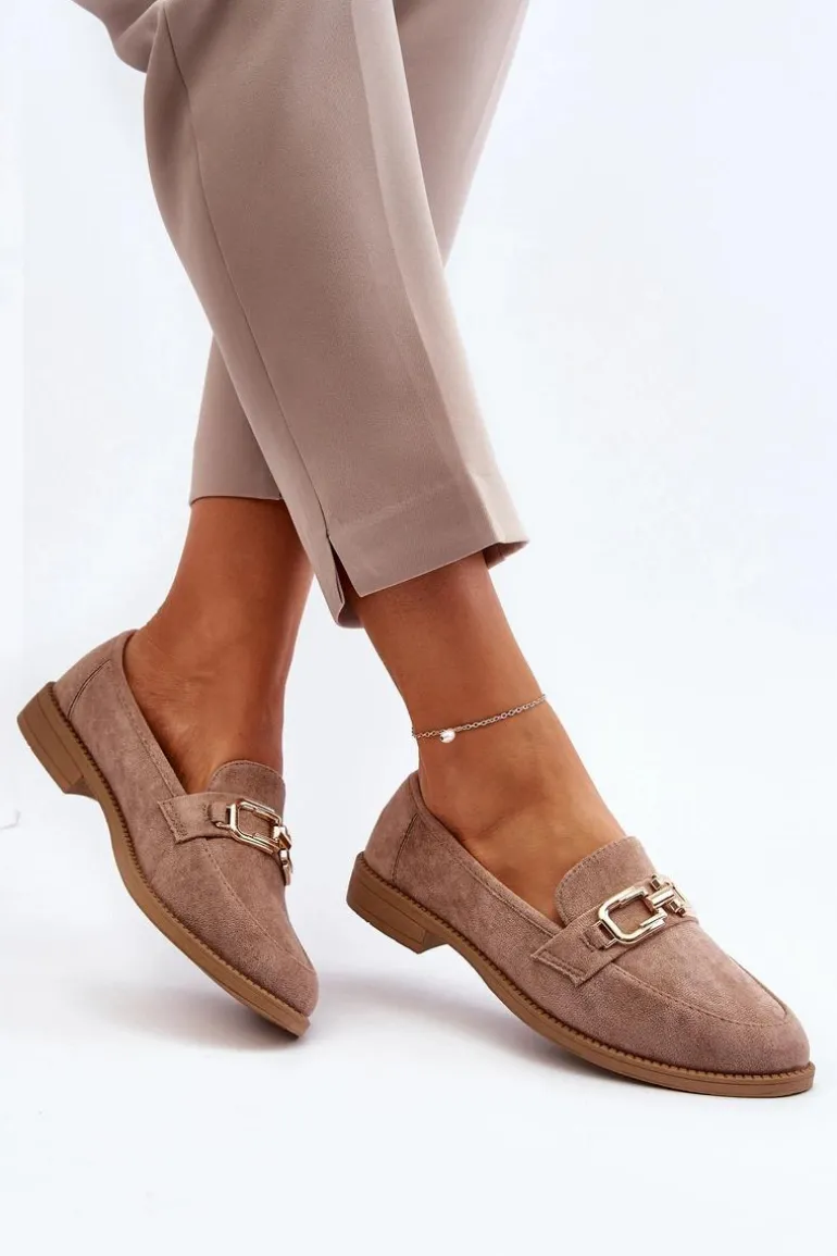 Mokasyny damskie wykonane z przyjemnego w dotyku eko zamszu. Osadzone na płaskim obcasie. Miękka wkładka zapewni komfort podczas noszenia nawet przez cały dzień. Przód ozdobiony jest subtelnym detalem. Noski w kształcie migdała dodają im klasycznego uroku. Fason ten idealnie będzie pasować do różnych stylizacji! Przy wyborze rozmiaru prosimy sugerować się tabelą rozmiarów.