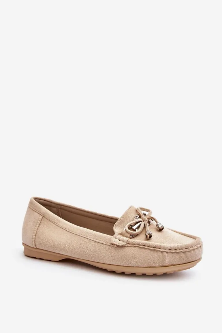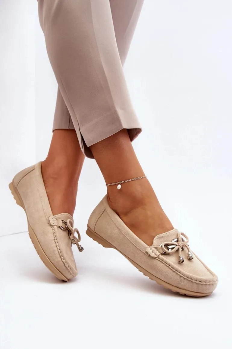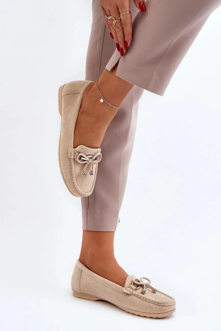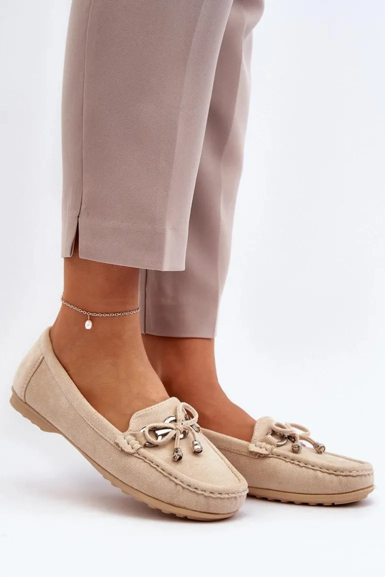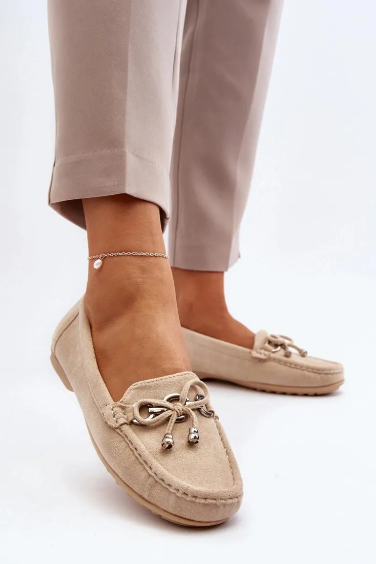 Zamszowe Mokasyny Damskie Ozdobą Beżowe Daphikaia
