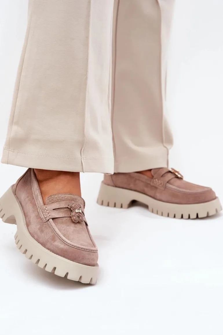 Zamszowe Mokasyny Damskie Z Przypinką Miś Vinceza 79533 Beżowe
