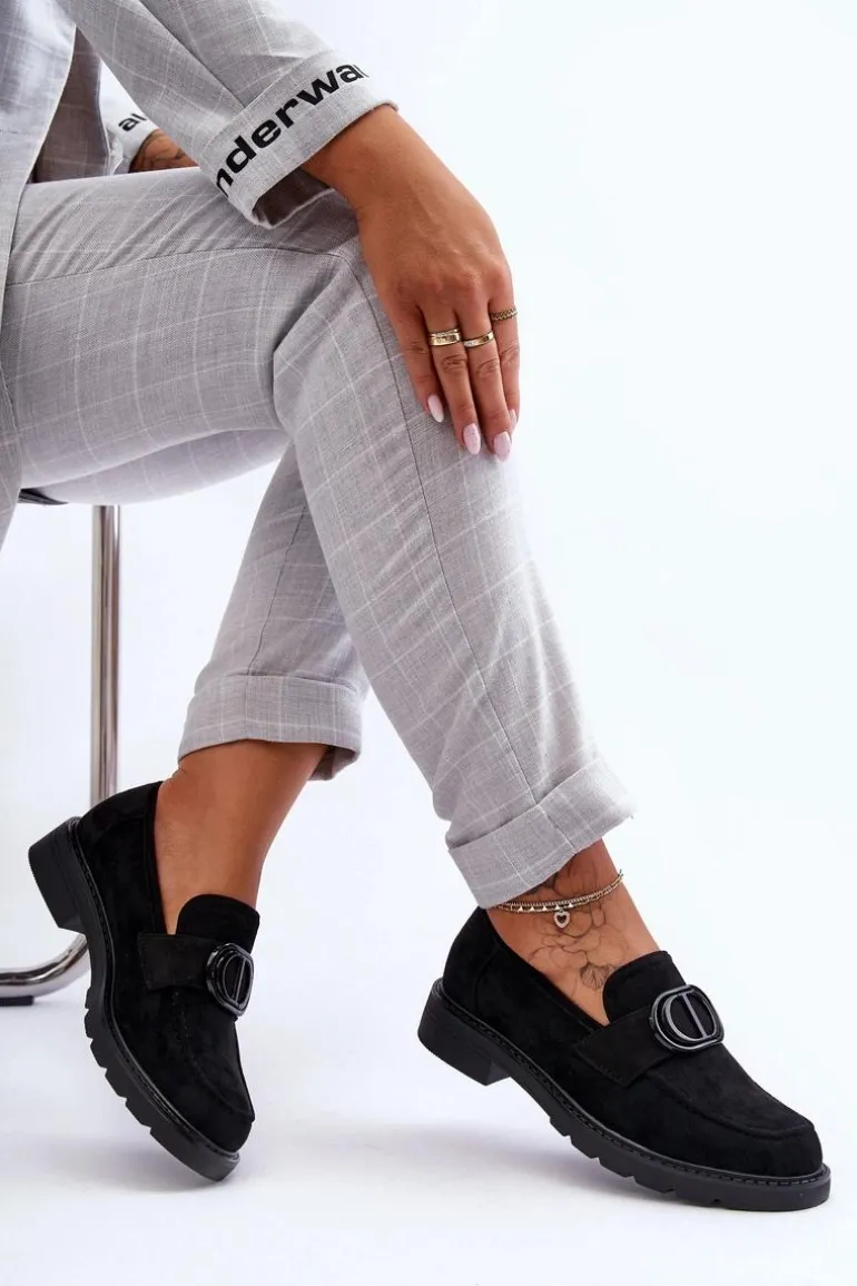 Modne damskie mokasyny zostały wykonane z eko zamszu. Buty te osadzono na masywnej platformie i płaskim obcasie. Z przodu na pasku znajduje się mała ozdoba. Eko skórzana wkładka pozwoli na wygodne użytkowanie obuwia. Idealne do wiosenno-jesiennych stylizacji! Przy wyborze rozmiaru prosimy sugerować się poniższą tabelą rozmiarów.