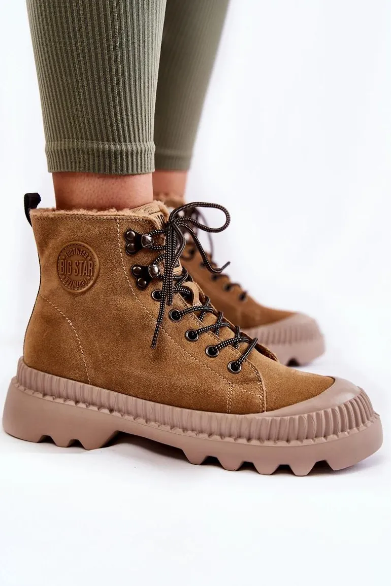 Trapery marki Big Star wykonane są z naturalnego zamszu. Środek butów został ocieplony materiałem. Masywna podeszwa oraz płaski obcas sprawiają, że botki są stabilne podczas użytkowania na nierównej nawierzchni. Model z klasycznym sznurowaniem z przodu. Dodatkowo nosek oraz zapiętek są usztywniane. Koniecznie sprawdź całą kolekcję tej marki! Przy wyborze rozmiaru prosimy sugerować się tabelą rozmiarów.