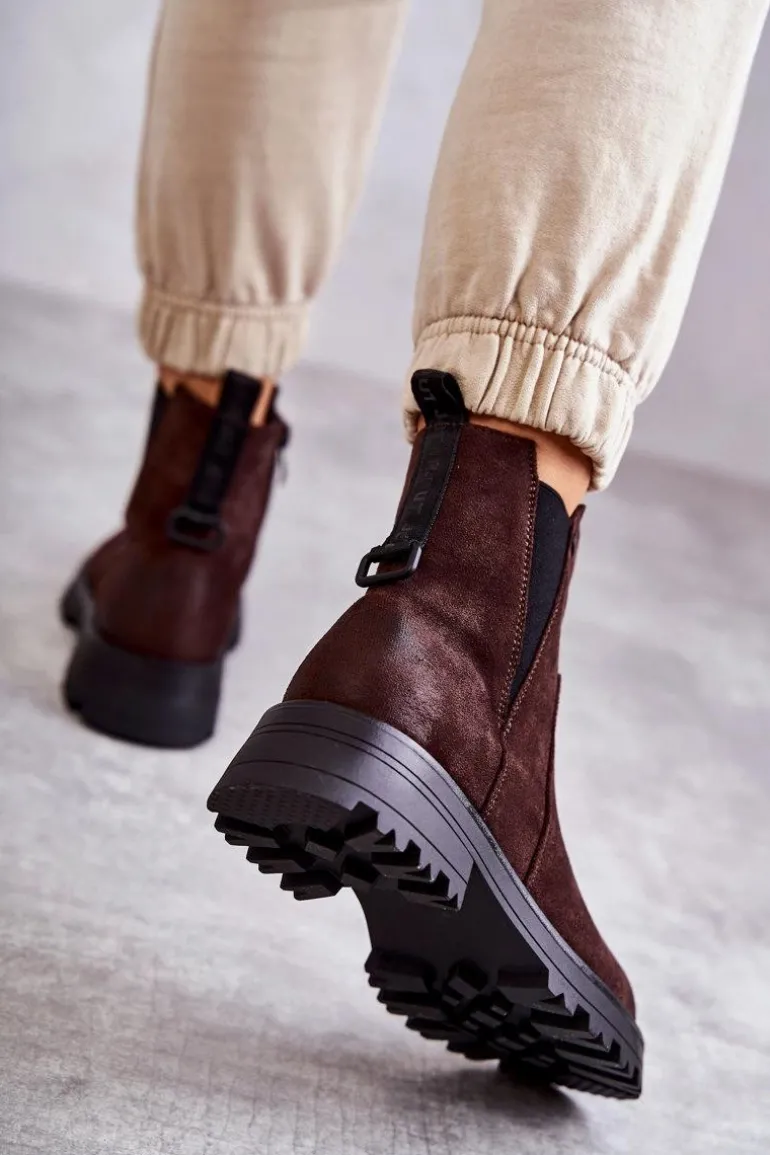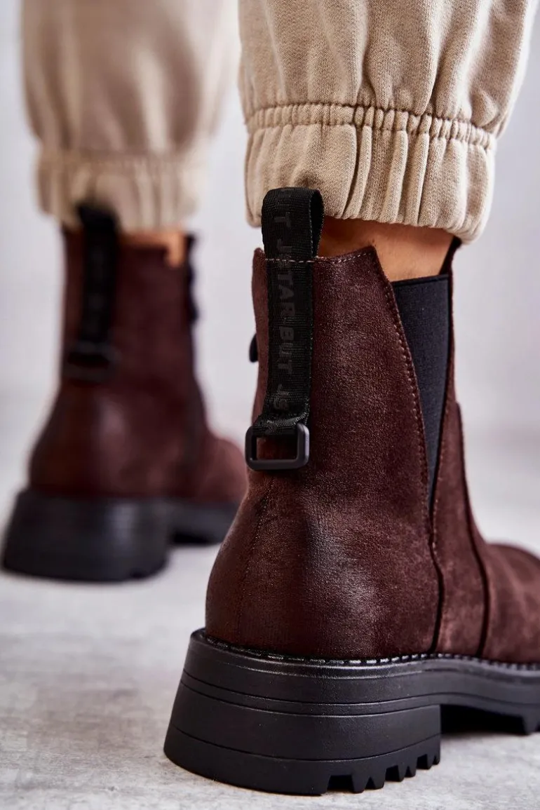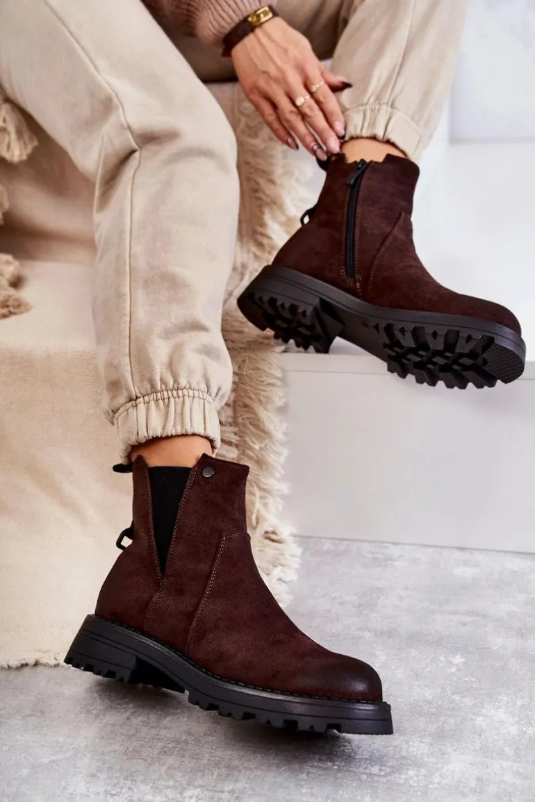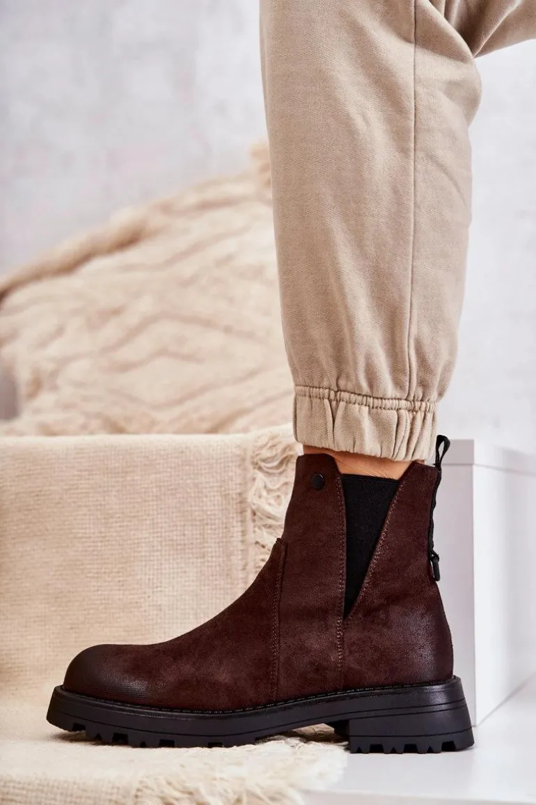 Klasyczne botki damskie to HIT tej jesieni! Posiadają z tyłu wszytą ozdobę z napisem. Gumka z boku cholewki pozwoli na odpowiednie dopasowanie do tęgości nogi. Osadzone na płaskim, stabilnym obcasie ze żłobieniami. W środku botki posiadają ocieplenie w postaci koca obuwniczego. Usztywniany zapiętek zapewni stabilizację nogi podczas użytkowania. Przy wyborze rozmiaru prosimy sugerować się tabelą rozmiarów.
