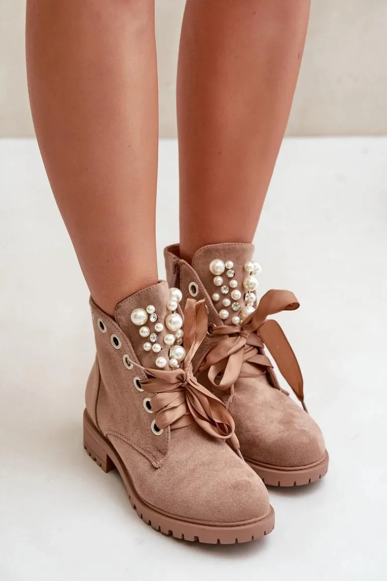 Wyjątkowe botki damskie wykonane z eko skóry. Wnętrze ocieplone pianką pokrytą materiałem. Model wyróżnia się krojem cholewki oraz ozdobami. Przy wyborze rozmiaru prosimy sugerować się tabelą rozmiarów.