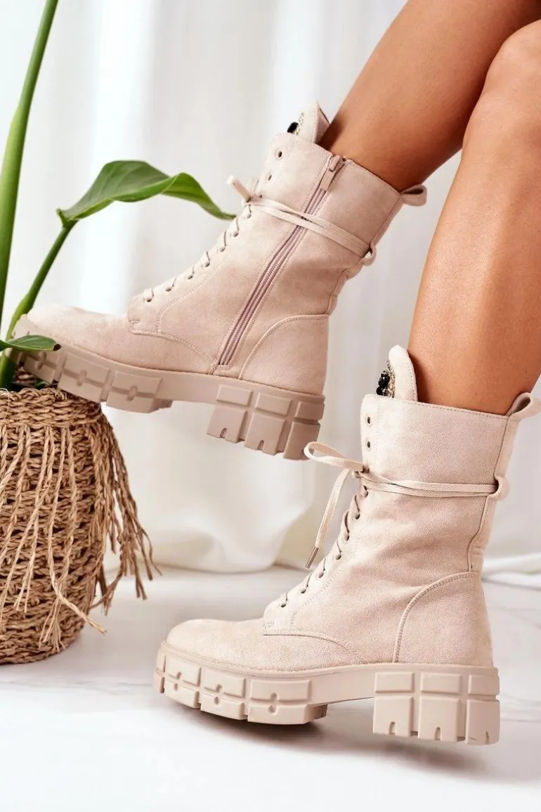 Zamszowe Ocieplane Workery Z Kamieniami Beżowe Hadley