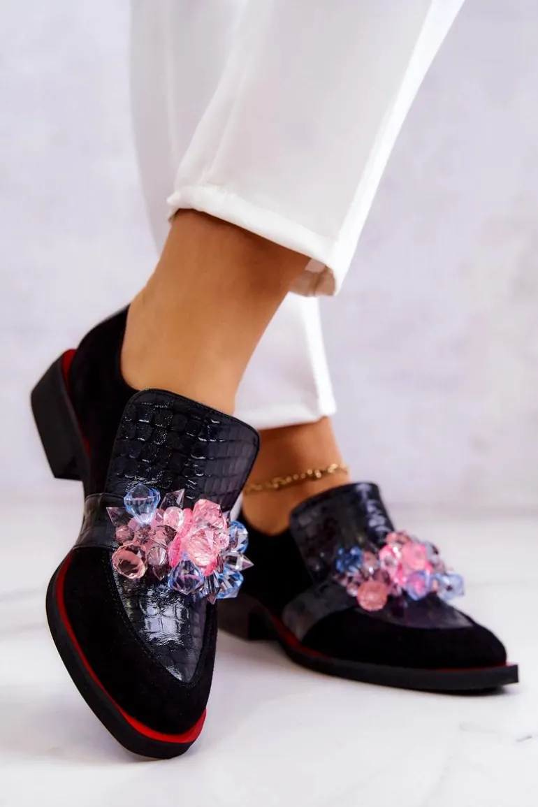 Półbuty są wykonane z naturalnej skóry. Modny krokodyli wzór na przodzie oraz tyle. Miękka wkładka z naturalnej skóry daje poczucie komfortu na każdym kroku. Buty wykonane z dbałością o szczegóły. Piękna ozdoba na przodzie nadaje butom elegancji! Buty posiadają niewysoki obcas. Nie zwlekaj i kup już dziś! Przy wyborze rozmiaru prosimy sugerować się tabelą rozmiarów.