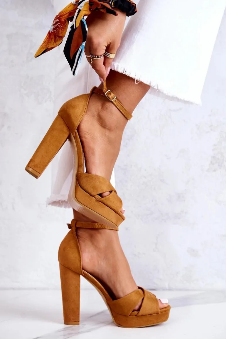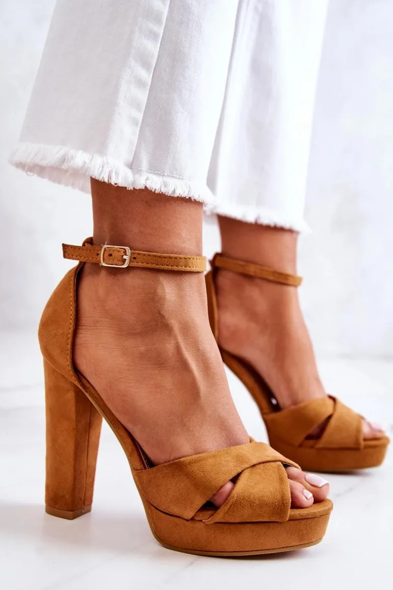 Zamszowe Sandałki Na Słupku Camel Lanelle