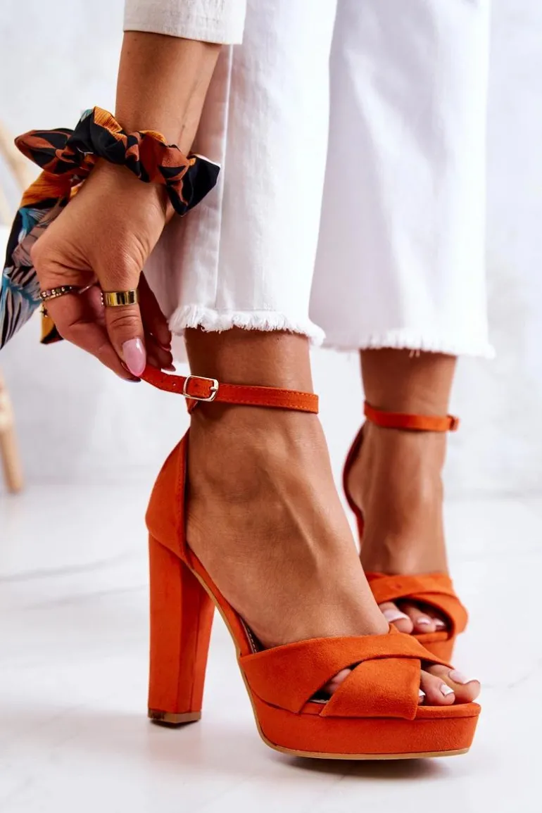 Świetne sandałki wykonane z zamszowej eko skóry. Posiadają wysoki obcas w postaci słupka oraz platformę. Regulowany pasek zapinany na sprzączkę. Idealny model na różnego rodzaju okazje! Sandałki posiadają eko skórzaną, miękką wkładkę. Koniecznie musisz je mieć! Przy wyborze rozmiaru prosimy kierować tabelą rozmiarów.