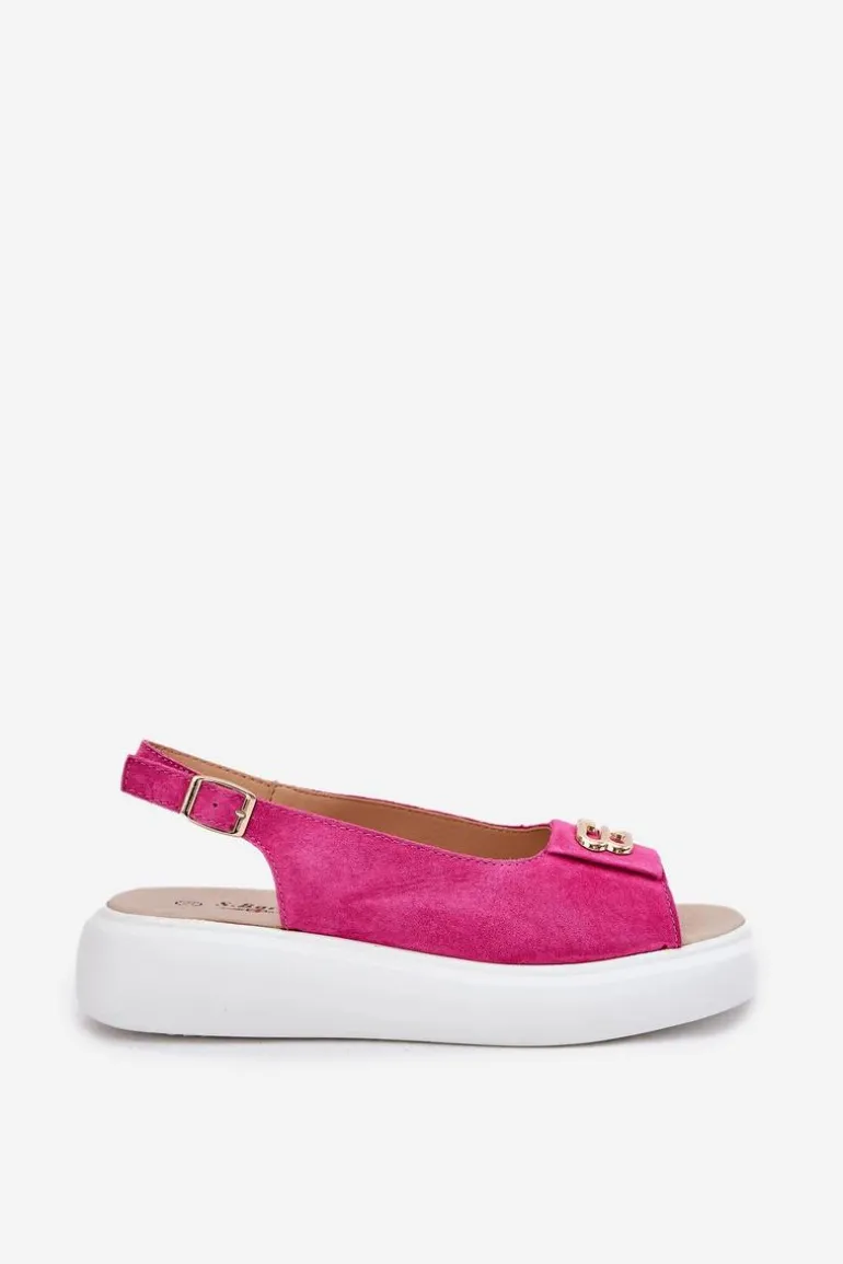 Damskie sandały z naturalnego zamszu to elegancka propozycja na letnie dni. Z przodu sandałów znajduje się subtelny złoty detal, który dodaje im wyjątkowego uroku i elegancji. Osadzone na platformie, zapewniają stabilność i komfort przez cały dzień. Skórzana wkładka gwarantuje wygodę, sprawiając, że te sandały będą doskonałym uzupełnieniem zarówno codziennych, jak i bardziej eleganckich stylizacji. Idealne na letnie wyjścia i specjalne okazje. Przy wyborze rozmiaru prosimy kierować się tabelą rozmiarów.