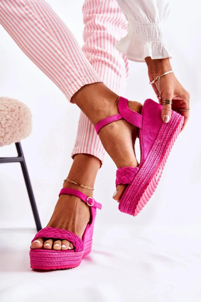 Sandały damskie wykonane z eko skóry. Regulowane zapinanie ze sprzączką. Głównym elementem zdobienia jest piękny, przeplatany pasek na przodzie. Koturn jest dodatkowo ozdobiony. Podeszwa gumowa i antypoślizgowa. Eko skórzana wkładka zadba o Twój komfort i wygodę. Sandały świetnie sprawdzą się w letnich stylizacjach. Przy wyborze rozmiaru prosimy sugerować się tabelą rozmiarów.