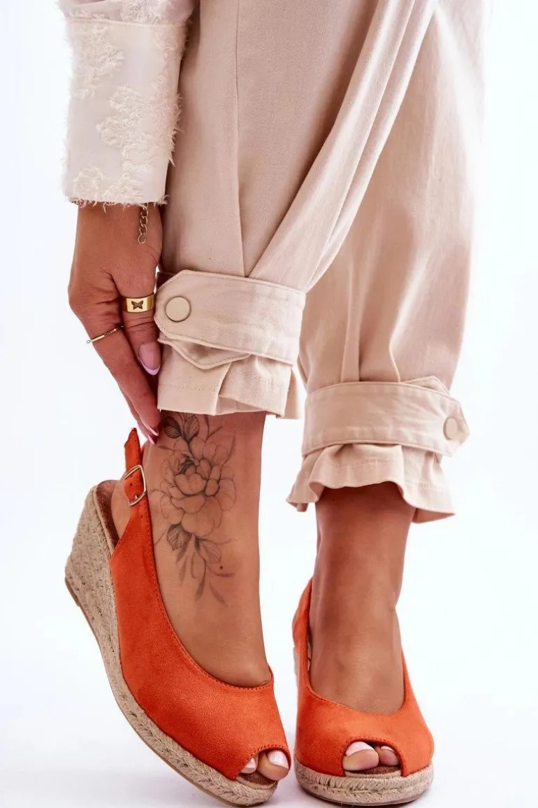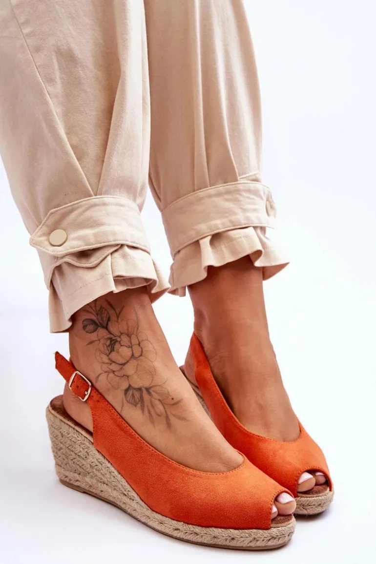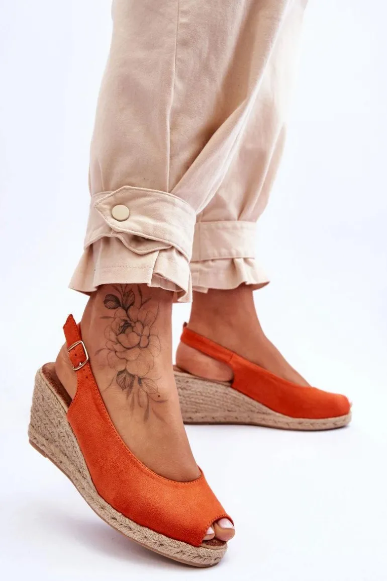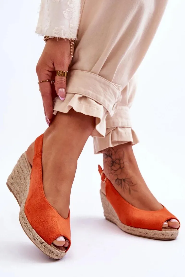 Zamszowe Sandały Na Koturnie Pomarańczowe Elsie
