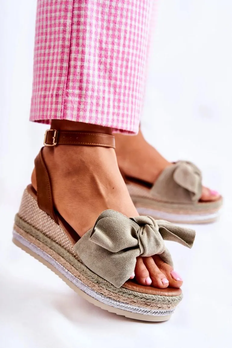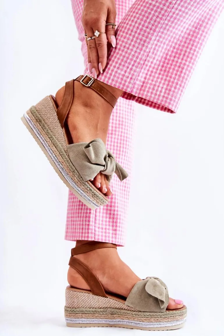 Sandały damskie wykonane z eko zamszu. Regulowane zapinanie ze sprzączką. Głównym elementem zdobienia jest piękna kokarda z eko zamszu. Koturn posiada trzy kolorowe, plecione paski. Podeszwa jest gumowa i antypoślizgowa. Eko skórzana wkładka zadba o Twój komfort i wygodę. Sandały świetnie sprawdzą się w letnich stylizacjach. Przy wyborze rozmiaru prosimy sugerować się tabelą rozmiarów.