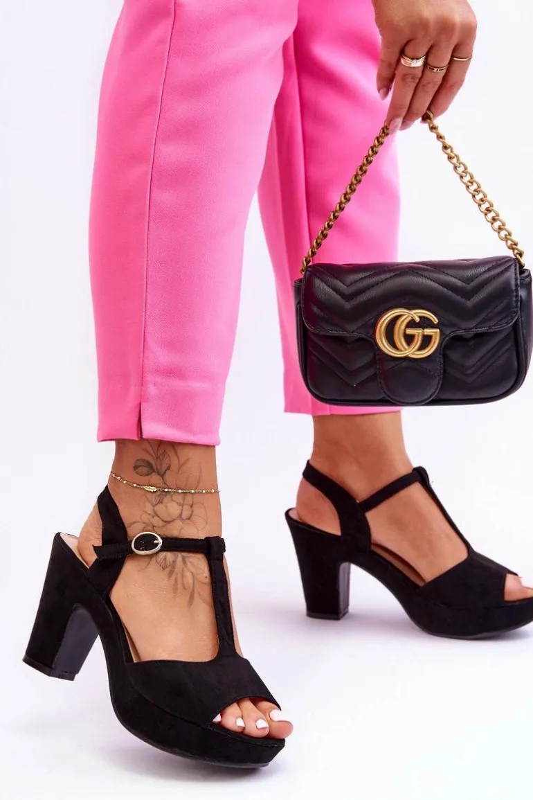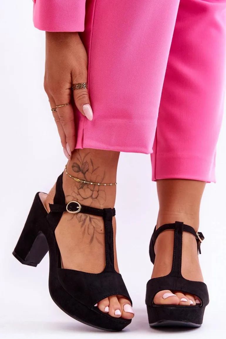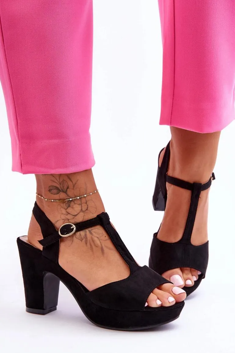 Klasyczne, damskie sandałki zostały wykonane z eko zamszu. Świetnie sprawdzą się na wiele okazji podczas letniego sezonu! Miękka wkładka z eko skóry zapewni wygodne użytkowanie obuwia. Sandałki posiadają na środku paseczek. Zapinane są wokół kostki na regulowany pasek ze sprzączką. Model ten został osadzony na obcasie w postaci słupka. Przy wyborze rozmiaru prosimy sugerować się tabelą rozmiarów.
