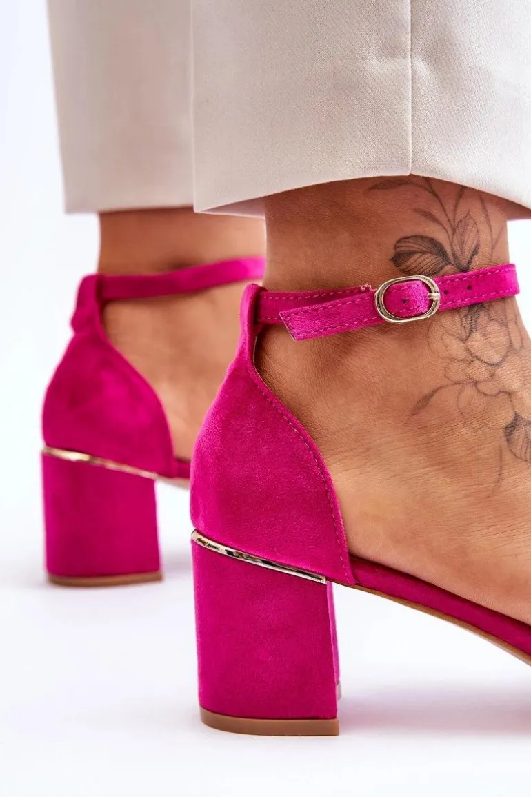 Zamszowe Sandały Na Obcasie Z Ozdobnym Warkocze Fuksja Azela