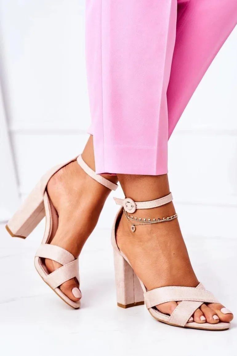 Klasyczne sandały na słupku wykonane z eko zamszu. Modny fason dostępny w wielu pięknych kolorach! Przy wyborze rozmiaru prosimy sugerować się tabelą rozmiarów.