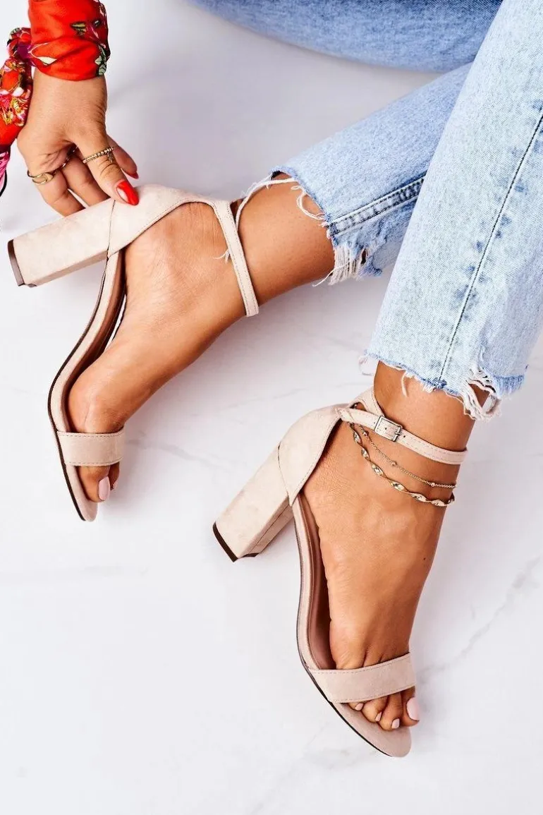 Eleganckie sandały na słupku wykonane z eko zamszu. Miękka wkładka z eko skóry oraz wygodny obcas zapewnią komfort. Przy wyborze rozmiaru prosimy sugerować się tabelą rozmiarów.