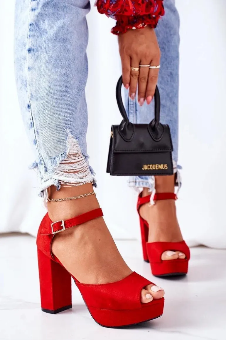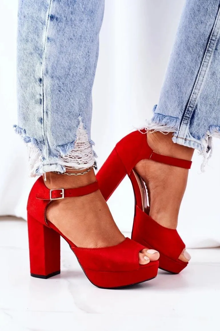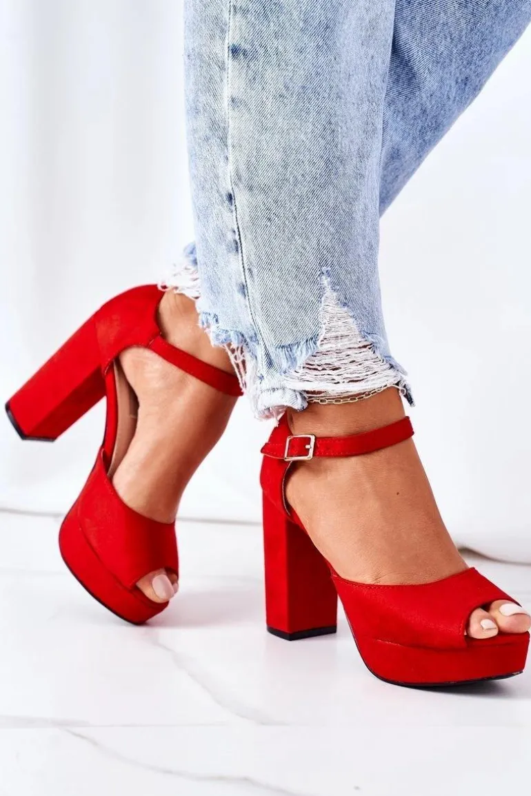 Eleganckie sandały na słupku wykonane z eko zamszu. Miękka wkładka z eko skóry oraz wygodny obcas zapewnią komfort. Przy wyborze rozmiaru prosimy sugerować się tabelą rozmiarów.