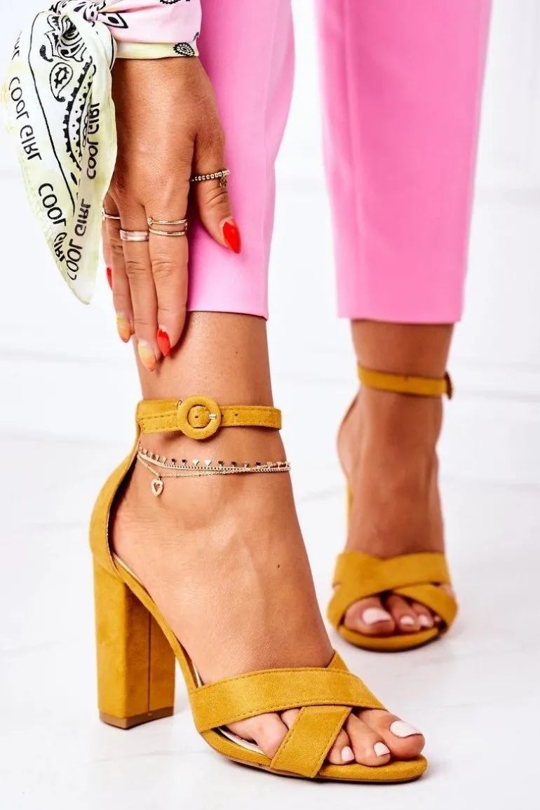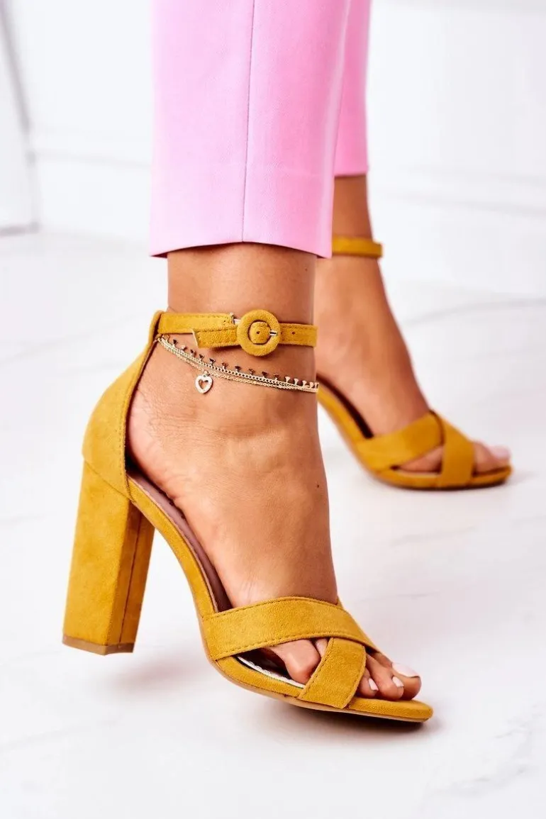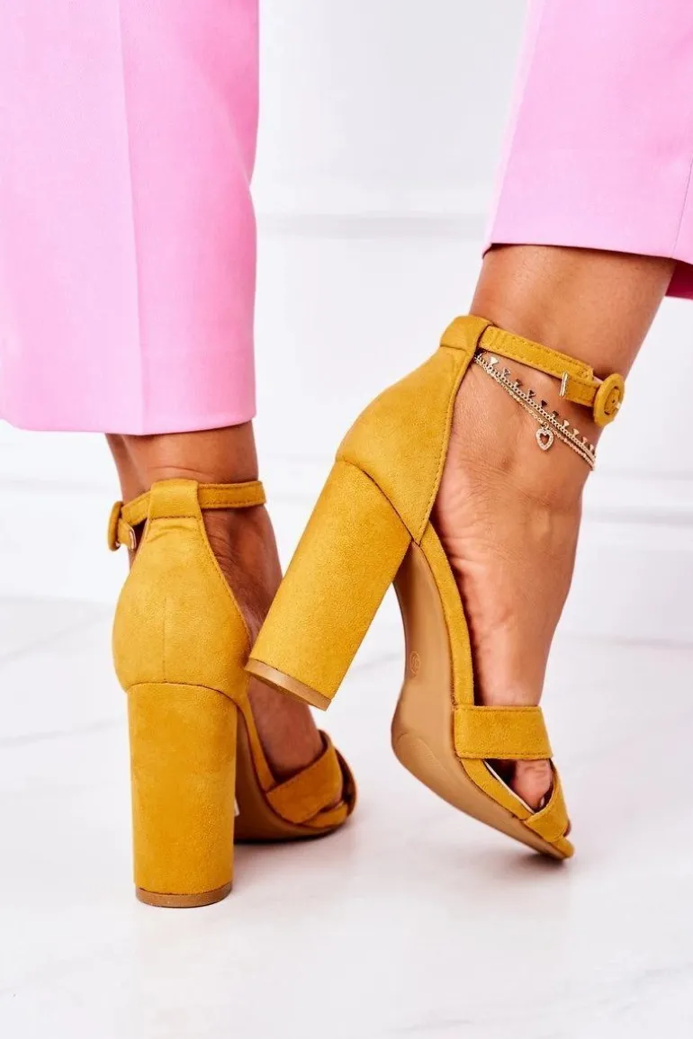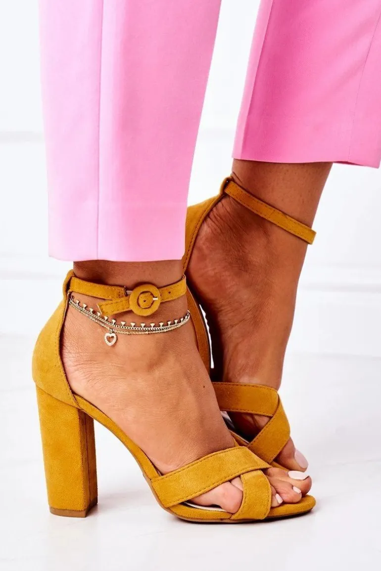 Klasyczne sandały na słupku wykonane z eko zamszu. Modny fason dostępny w wielu pięknych kolorach! Przy wyborze rozmiaru prosimy sugerować się tabelą rozmiarów.