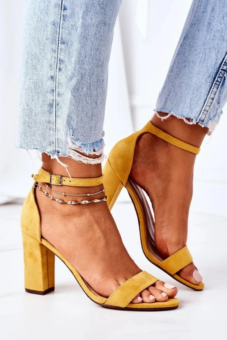 Eleganckie sandały na słupku wykonane z eko zamszu. Miękka wkładka z eko skóry oraz wygodny obcas zapewnią komfort. Przy wyborze rozmiaru prosimy sugerować się tabelą rozmiarów.
