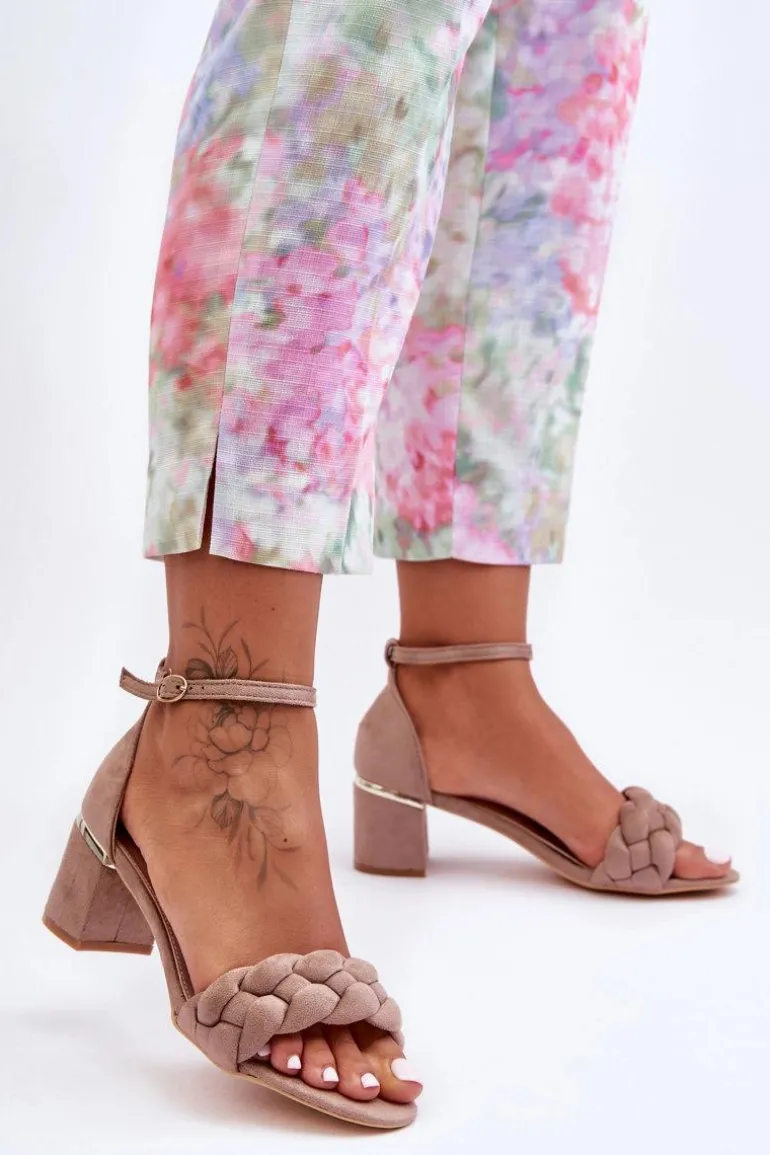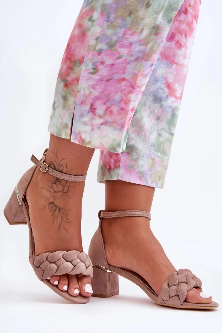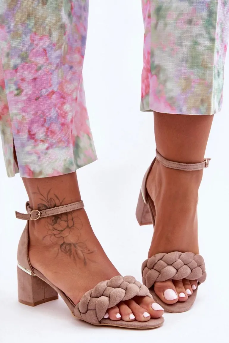 Zamszowe Sandały Z Warkoczem Ciemnobeżowe Essenza