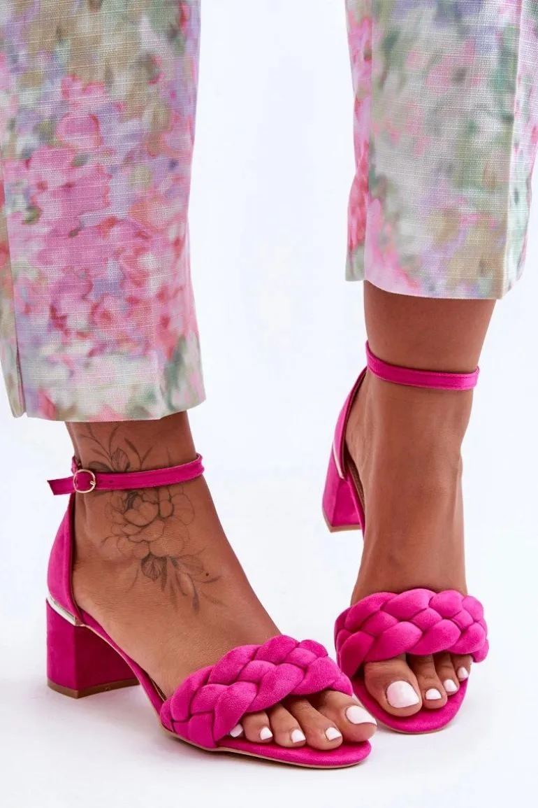 Zamszowe Sandały Z Warkoczem Fuksja Essenza