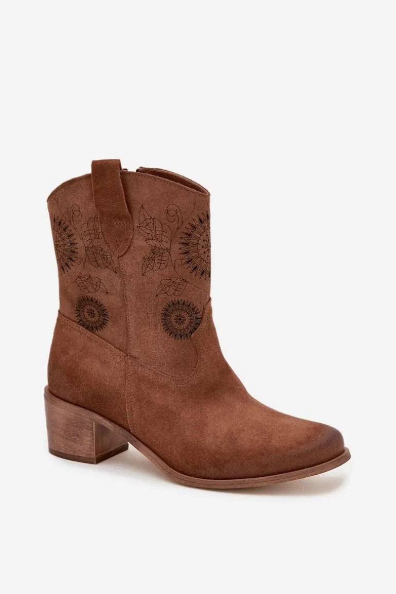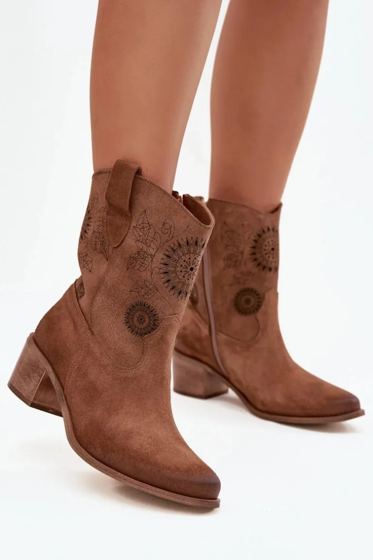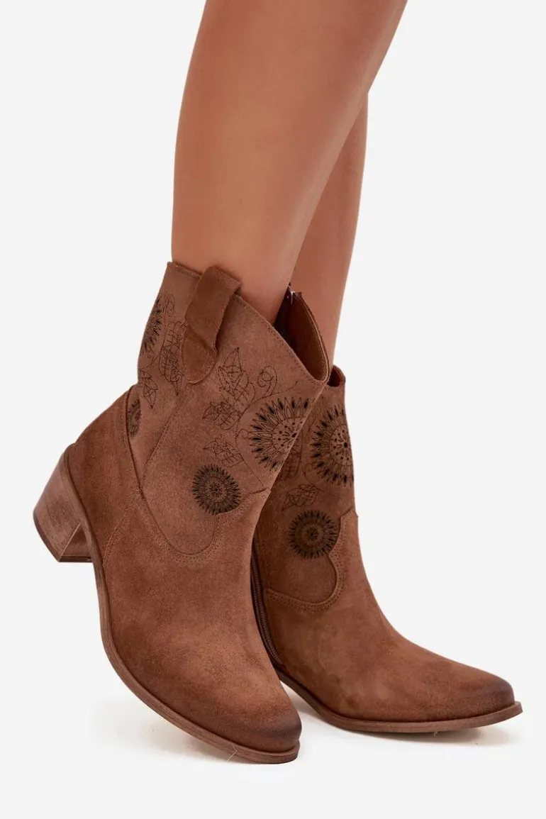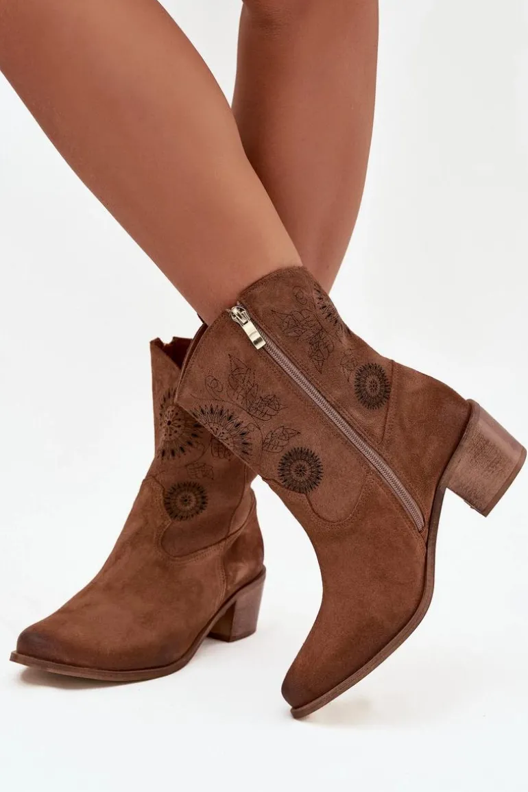 Botki damskie wykonane z naturalnego zamszu to elegancka i stylowa propozycja na sezon przejściowy oraz cieplejsze dni jesieni. Subtelny ażurowy wzór dodaje całości lekkości i wyjątkowego charakteru. Model został osadzony na stabilnym obcasie w formie klocka, który zapewnia komfort podczas chodzenia i delikatnie podkreśla sylwetkę. Migdałowe noski. Zapięcie na zamek ułatwia zakładanie i zdejmowanie, czyniąc obuwie wygodnym w codziennym użytkowaniu. To botki, które znakomicie uzupełnią zarówno casualowe, jak i bardziej szykowne stylizacje, dodając im subtelnej elegancji i modnego charakteru. Przy wyborze rozmiaru prosimy sugerować się tabelą rozmiarów.
