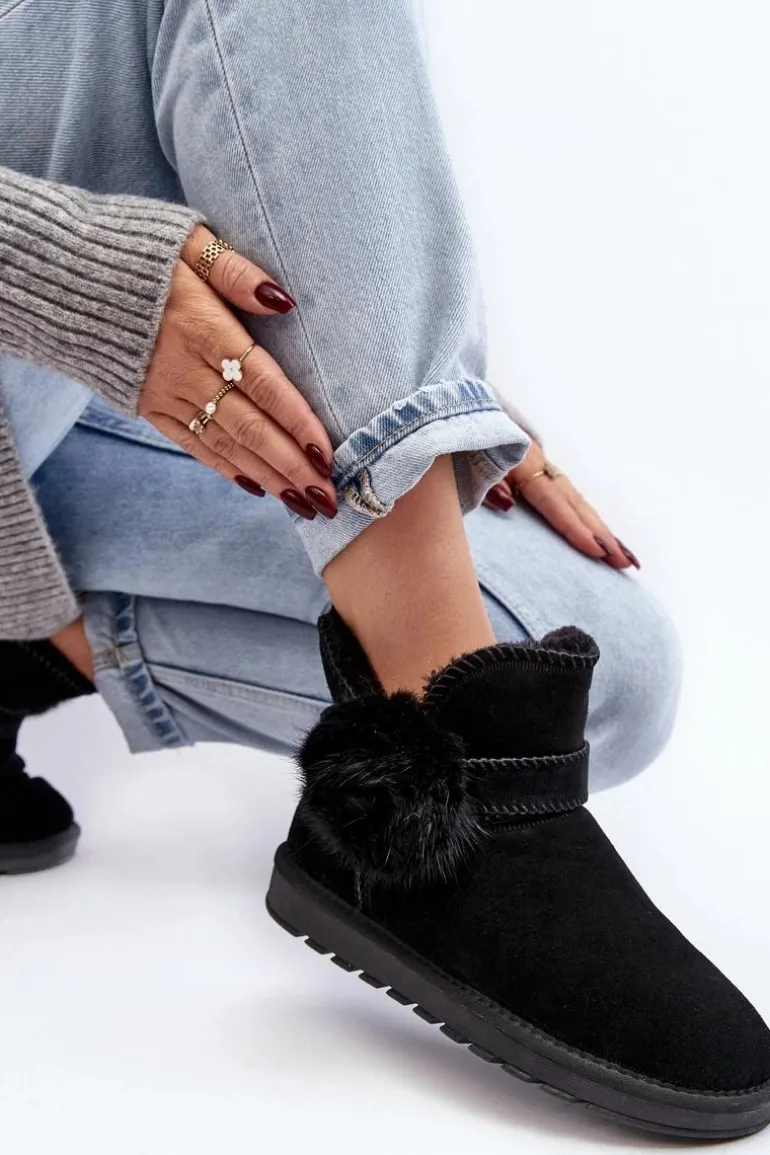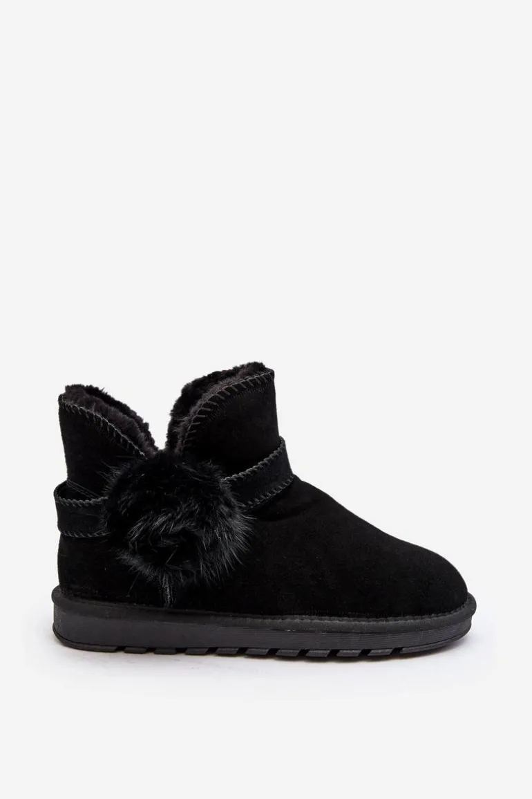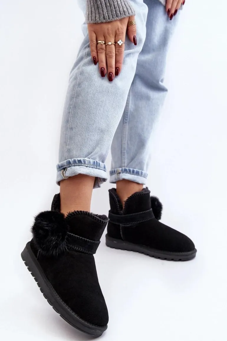 Śniegowce damskie wykonane z naturalnego zamszu. Cholewka z wycięciami ozdobiona ściąganym paskiem. Środek ocieplony grubym futerkiem. Cholewka do kostki. Model ten posiada platformę z gumowego tworzywa, która świetnie odizoluje od zimnego podłoża. Koniecznie powinnaś je mieć! Przy wyborze rozmiaru prosimy sugerować się tabelą rozmiarów.