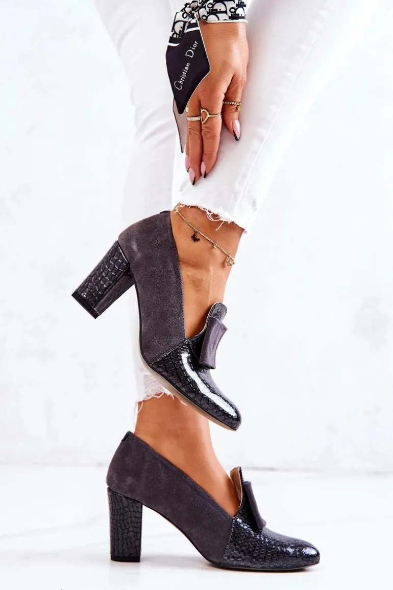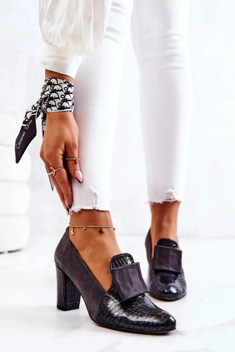 Piękne czółenka są wykonane z naturalnej skóry. Modny wzór na przodzie oraz obcasie. Miękka wkładka z naturalnej skóry daje poczucie komfortu na każdym kroku. Buty wykonane z dbałością o szczegóły. Nie możesz przejść obojętnie obok tego modelu! Nie zwlekaj i kup już dziś! Przy wyborze rozmiaru prosimy sugerować się tabelą rozmiarów, która dostępna jest po najechaniu bądź kliknięciu w dany rozmiar.